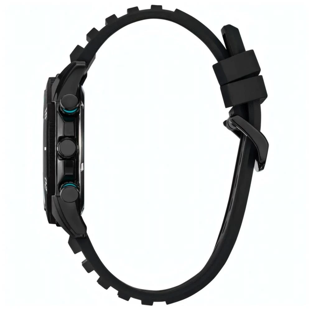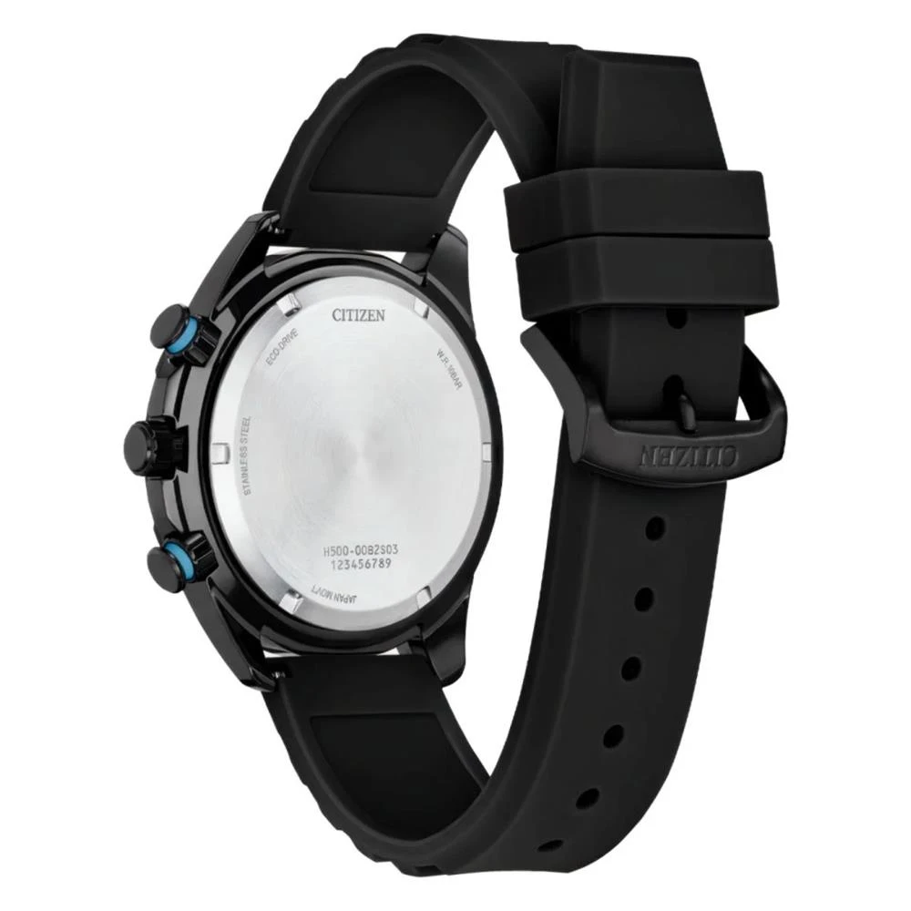 Funções: Analógico, Calendário, Solar, Cronógrafo, TaquímetroAlimentação do maquinário: Energia SolarMostrador Preto com números e detalhes em cianoAro Fixo PretoColeção: Citizen Brycen Eco-DriveGarantia de 2 Anos