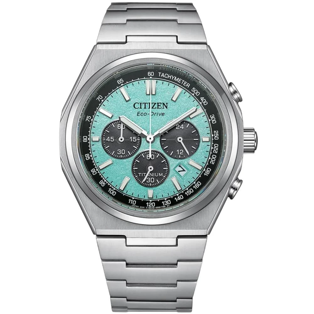 Funções: Analógico, Calendário, Solar, Cronógrafo, TaquímetroAlimentação do maquinário: Energia SolarMostrador ciano com detalhes em pretoColeção: Citizen Zenshin Super Titanium Eco-DriveGarantia de 2 Anos