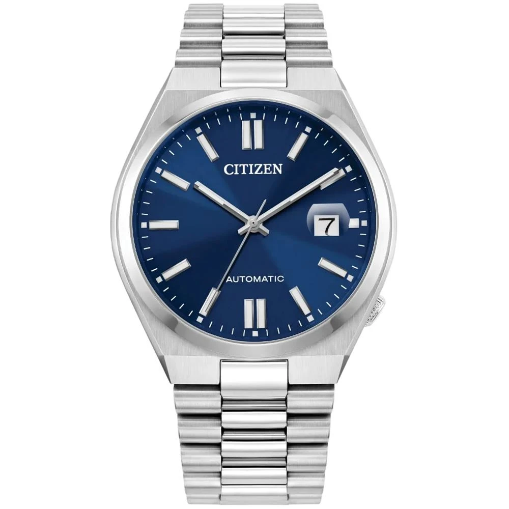 Caixa de Aço InoxidávelPulseira de Aço InoxidávelVidro: Cristais de SafiraFundo Rosqueado com detalhe de vidro que permite a vizualização do maquinárioResistente à Água 5 AtmDiâmetro / Largura da Caixa: 40.00 MmFunções: Analógico, Calendário com lupa, Automático, Função Hack (Ponteiro dos segundos para quando a coroa é levada para a posição 2 de acerto de horas), Enrolamento manual (Dá corda pela coroa)Estilo: CasualAlimentação do maquinário: Mecânico (Automático)Mostrador AzulColeção: Citizen TsuyosaGarantia de 2 Anos
