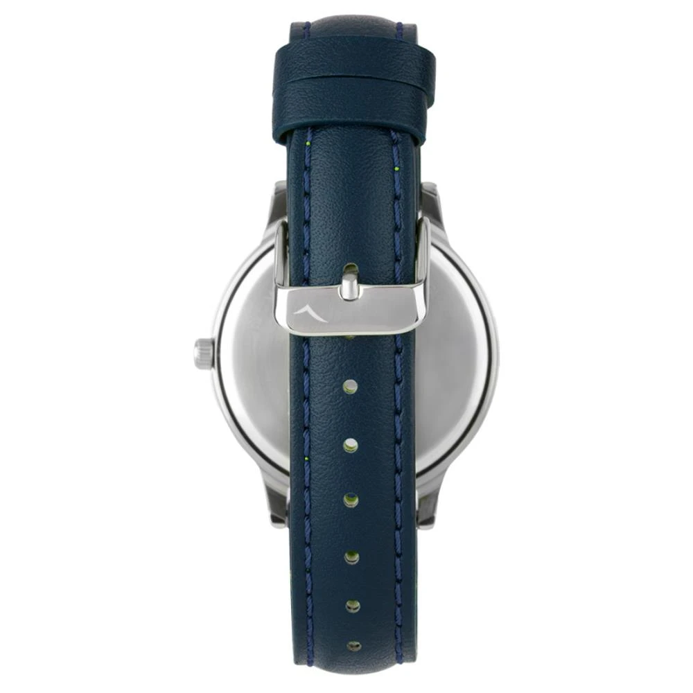 Caixa de MetalPulseira de Couro Ecológico AzulFundo de PressãoDiâmetro / Largura da Caixa: 40.00 MMFunções: AnalógicoResistente à água 5 ATMAlimentação do Maquinário: BateriaMaquina JaponesaMostrador Azul com todos os númerosGarantia de 1 Ano