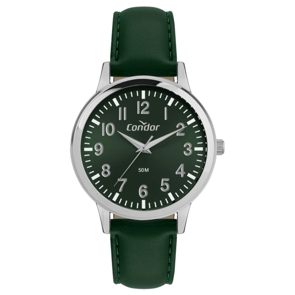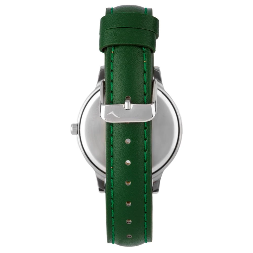 Caixa de MetalPulseira de Couro Ecológico VerdeFundo de PressãoDiâmetro / Largura da Caixa: 40.00 MMFunções: AnalógicoResistente à água 5 ATMAlimentação do Maquinário: BateriaMaquina JaponesaMostrador Verde com todos os númerosGarantia de 1 Ano
