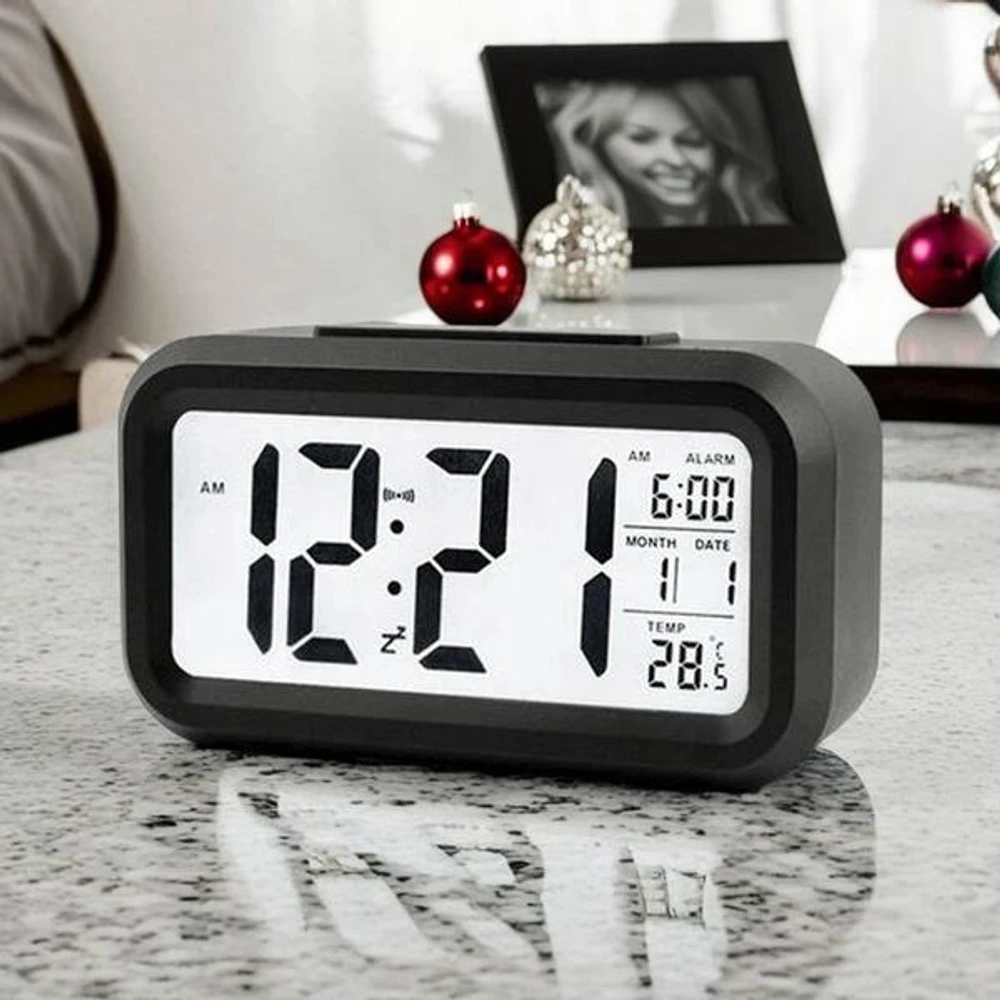 Despertador com função soneca e calendário, display com opção de 12hs ou 24hs.