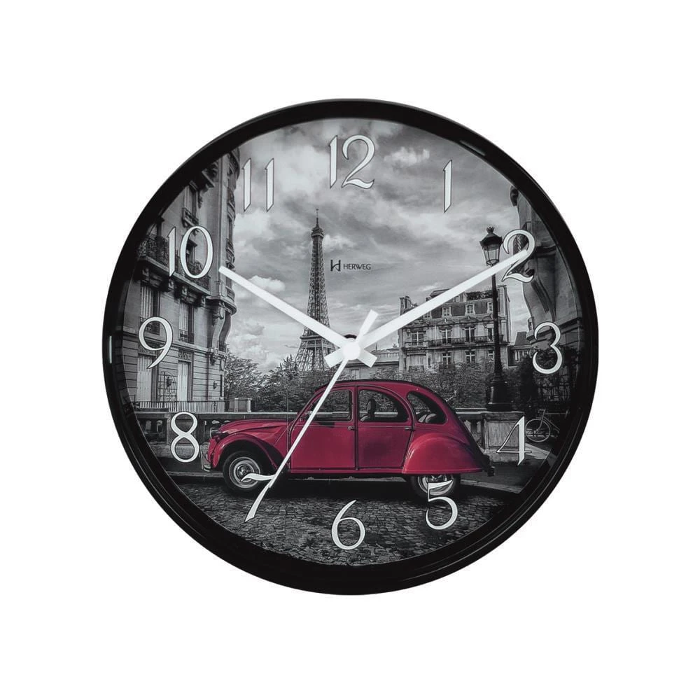 Cor do Mostrador: Foto de Paris, com Torre Eiffel ao fundo e carro antigo vermelho. Mostrador com todos os números