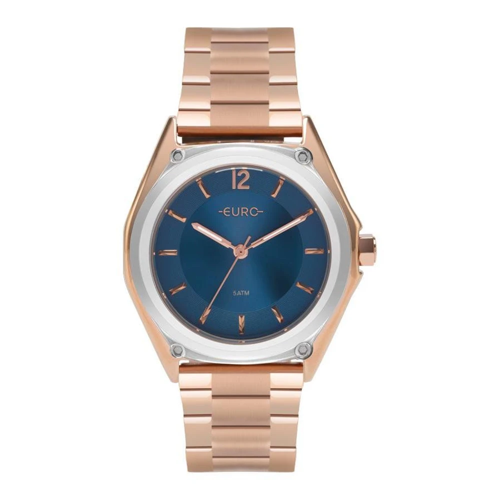 O relógio bicolor feminino Euro é da coleção Color Mix Geometric e mistura 3 tipos de banhos diferentes. Ele tem caixa geométrica que dá um diferencial ao produto. A pulseira e caixa têm banho na cor rosé. O aro é na cor prateada e o fundo do mostrador é na cor azul, dando um contraste fashion ao relógio. Tendência das formas geométricas com um toque de cor, para você arrasar no look!