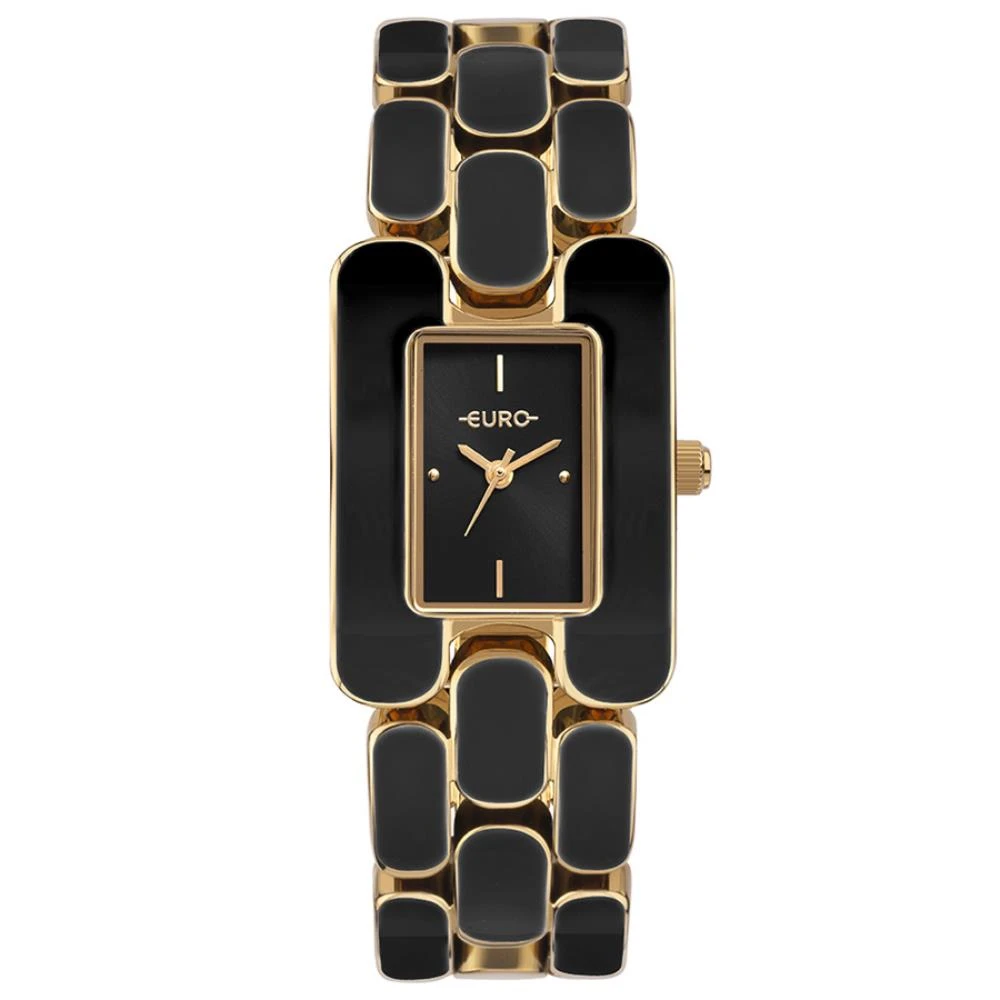 Caixa de MetalPulseira de Metal estilo bracelete com detalhes em pretoVidro de Cristal MineralFundo PressãoResistente à Água Até 3 AtmDiâmetro / Largura da Caixa: 25.00 MM x 33.00 MMFunções: Analógico, BraceleteMostrador PretoAlimentação do Maquinário: BateriaMaquina Japonesa