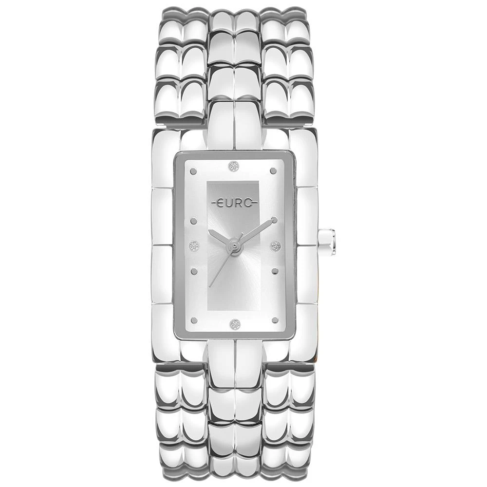 Caixa de MetalPulseira de AçoVidro de Cristal MineralFundo PressãoResistente à Água Até 3 AtmDiâmetro / Largura da Caixa: 22.00 MM x 30.00 MMFunções: AnalógicoMostrador Prateado com pedrasAlimentação do Maquinário: BateriaMaquina Japonesa