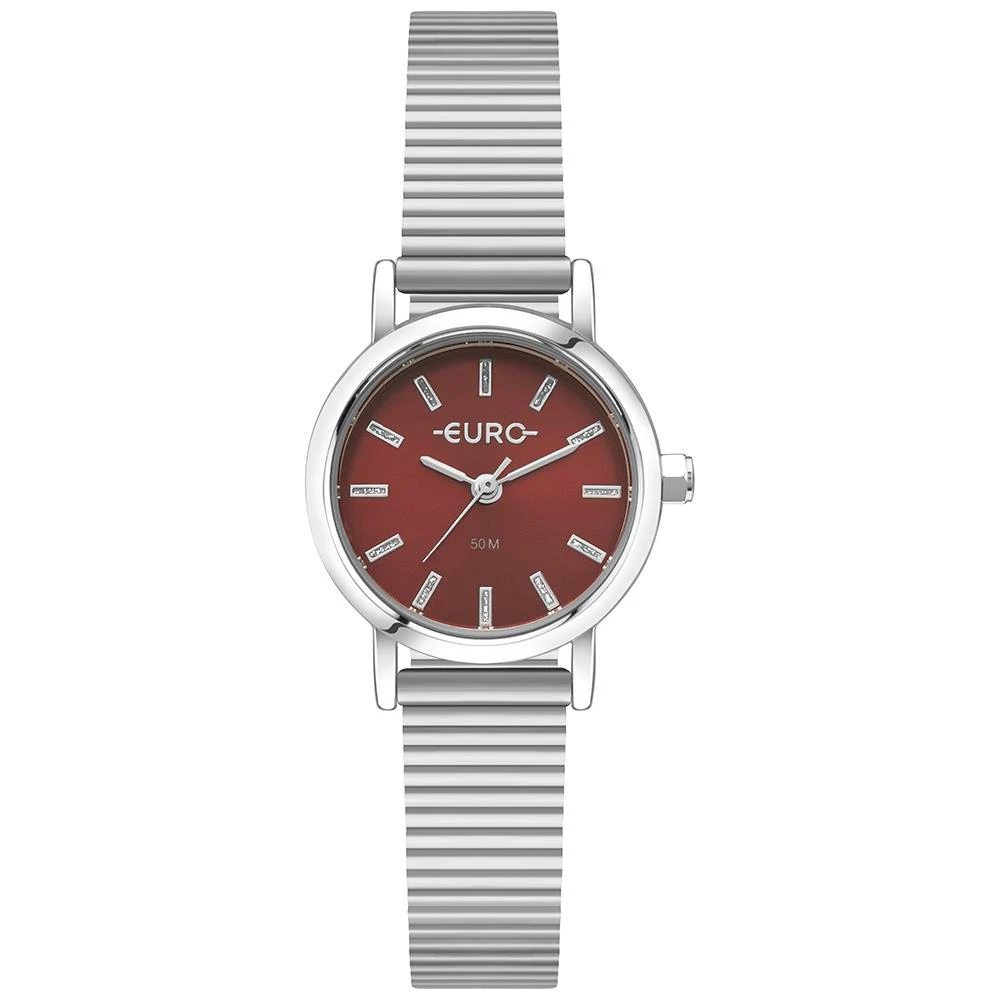 Caixa de MetalPulseira de AçoVidro de Cristal MineralFundo PressãoResistente à Água Até 5 AtmDiâmetro / Largura da Caixa: 25.00 MMFunções: AnalógicoMostrador Vermelho com brilhoAlimentação do Maquinário: BateriaMaquina Japonesa