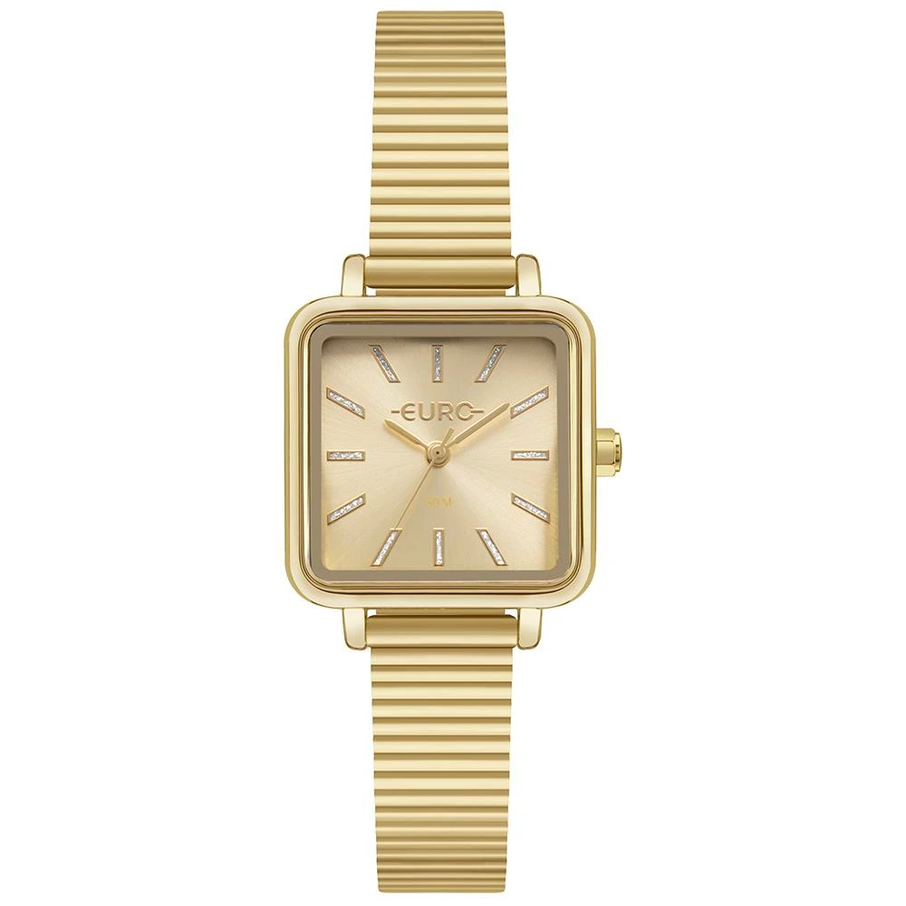 Caixa de MetalPulseira de AçoVidro de Cristal MineralFundo PressãoResistente à Água Até 5 AtmDiâmetro / Largura da Caixa: 25.00 MM x 25.00 MMFunções: AnalógicoMostrador Dourado com brilhoAlimentação do Maquinário: BateriaMaquina Japonesa