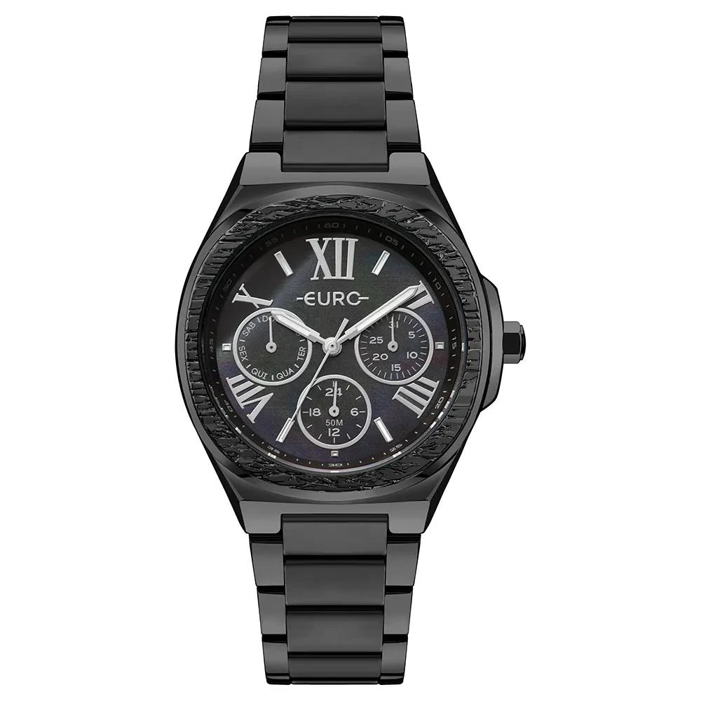Caixa de MetalPulseira de Aço InoxidávelVidro de Cristal MineralFundo PressãoResistente à Água Até 5 AtmDiâmetro / Largura da Caixa: 37.00 MMFunções: Analógico, MultifunçãoMostrador Madreperola Preta com Algarismo RomanoAlimentação do Maquinário: Bateria