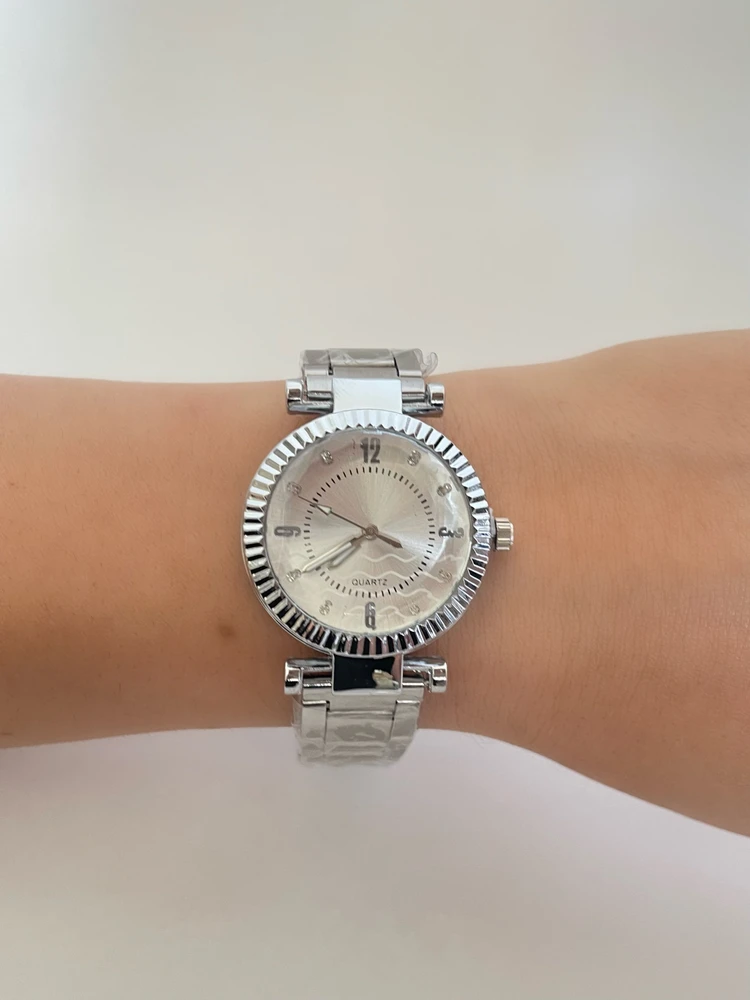 Com mostrador analógico e pulseira metalizada prateada, ele é perfeito para combinar com qualquer look — do básico ao elegante.