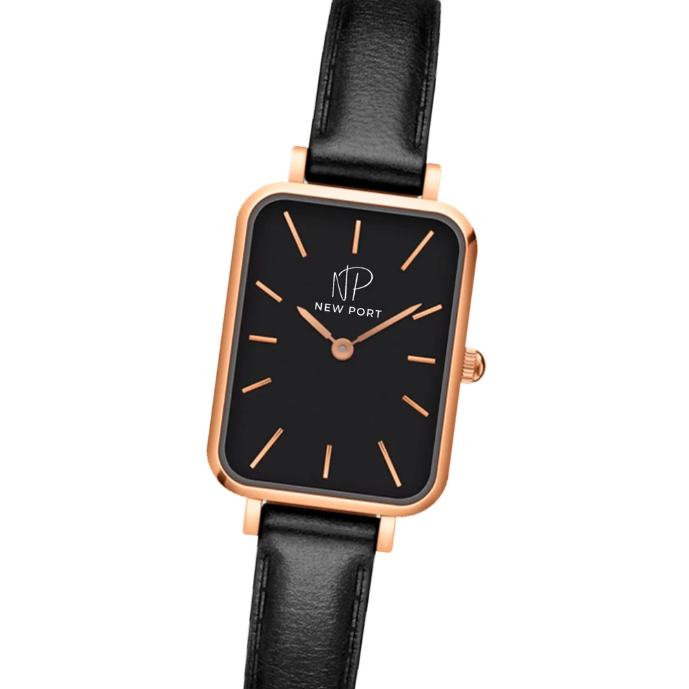 O Relógio Feminino New Port Quadrado Piermont Black Rosé, com sua pulseira de couro vegano preto, possui um elegante diâmetro de 20x26mm. Sua caixa em metal rosé abriga um mostrador preto, protegido por vidro de mineral resistente, garantindo durabilidade e estilo.