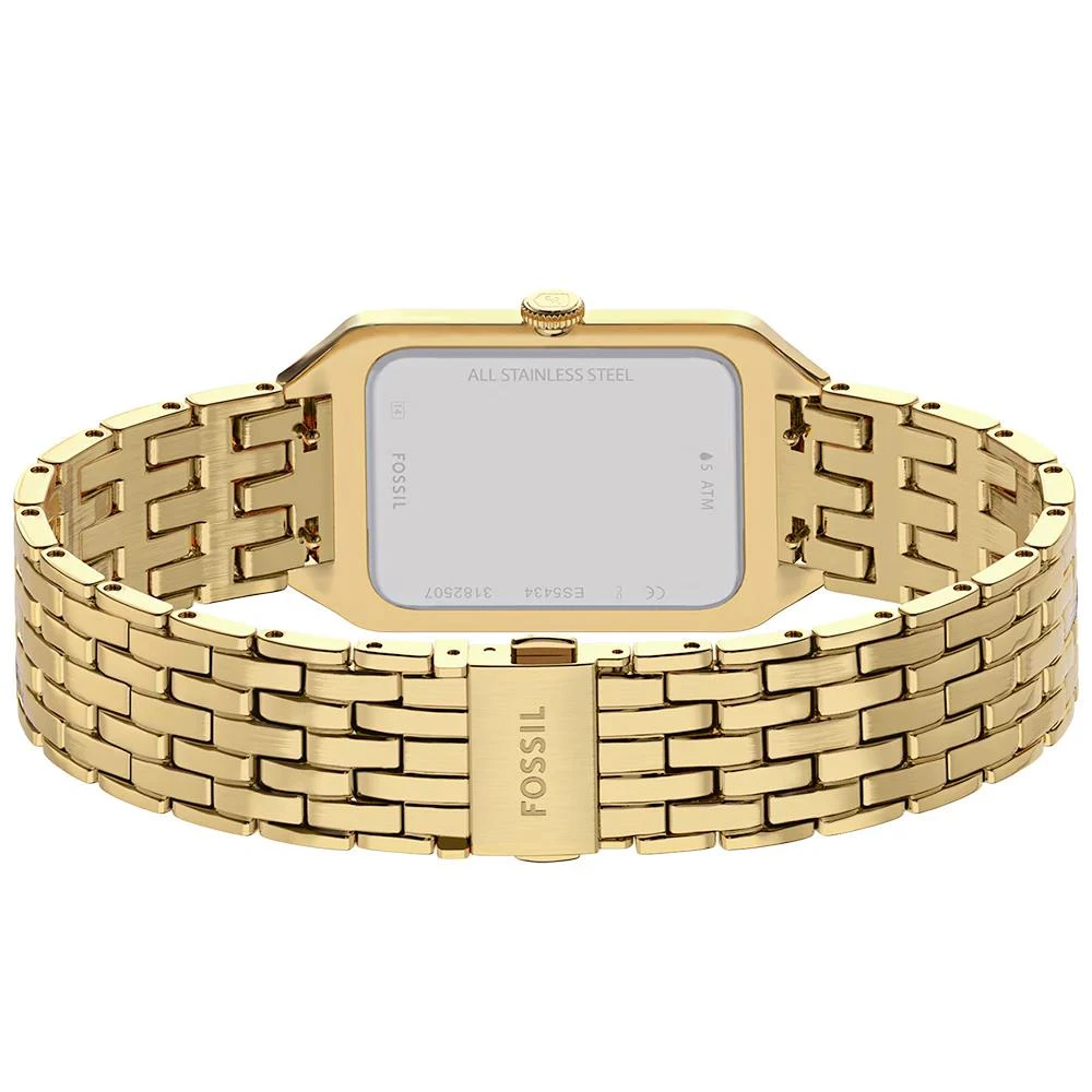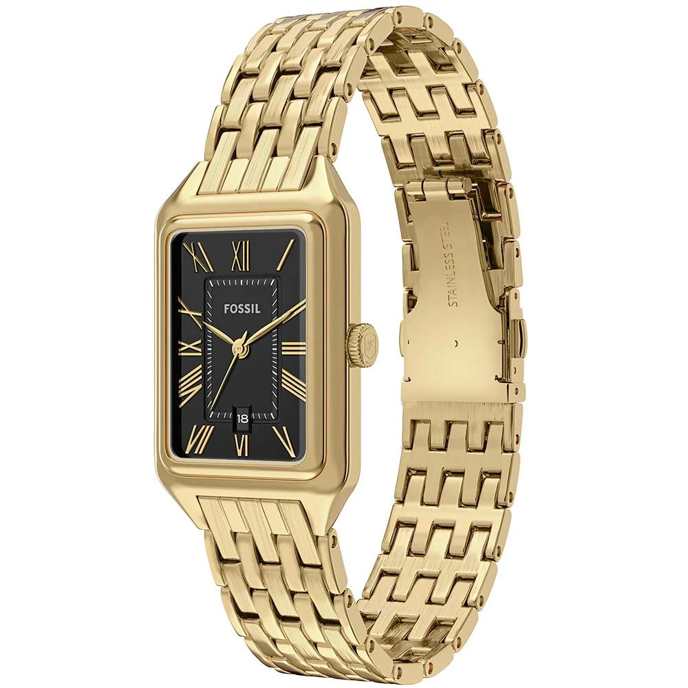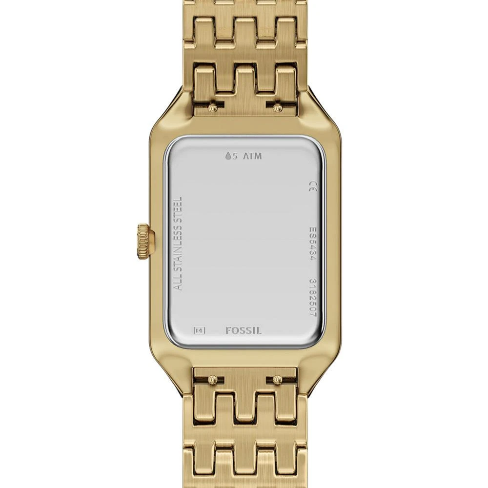 Caixa de Aço InoxidávelPulseira de Aço InoxidávelVidro de Cristal MineralFundo de PressãoResistente à Água 5 AtmDiâmetro / Largura da Caixa: 23.00 MM x 30.00 MMEspessura da Caixa: 7.00 MMFunção: Analógico, CalendárioModelo: Fossil RaquelAcabamento PremiumAlimentação do Maquinário: BateriaMostrador Preto com algarismos romanosGarantia de 2 Anos