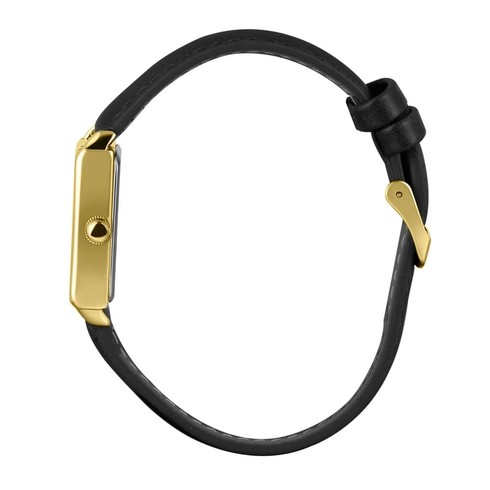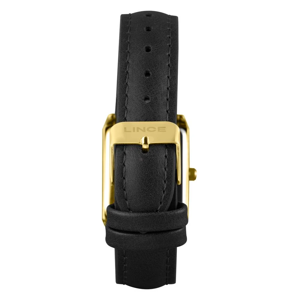 Caixa: MetalPulseira: Couro Ecológico PretaMedida da caixa: 25 mm x 28 mmVidro: Cristal MineralResistência à água: 50mFunções: AnalógicoMostrador Dourado com todos os númerosFundo de PressãoAlimentação do maquinário: BateriaMaquinário JaponêsGarantia de 1 Ano