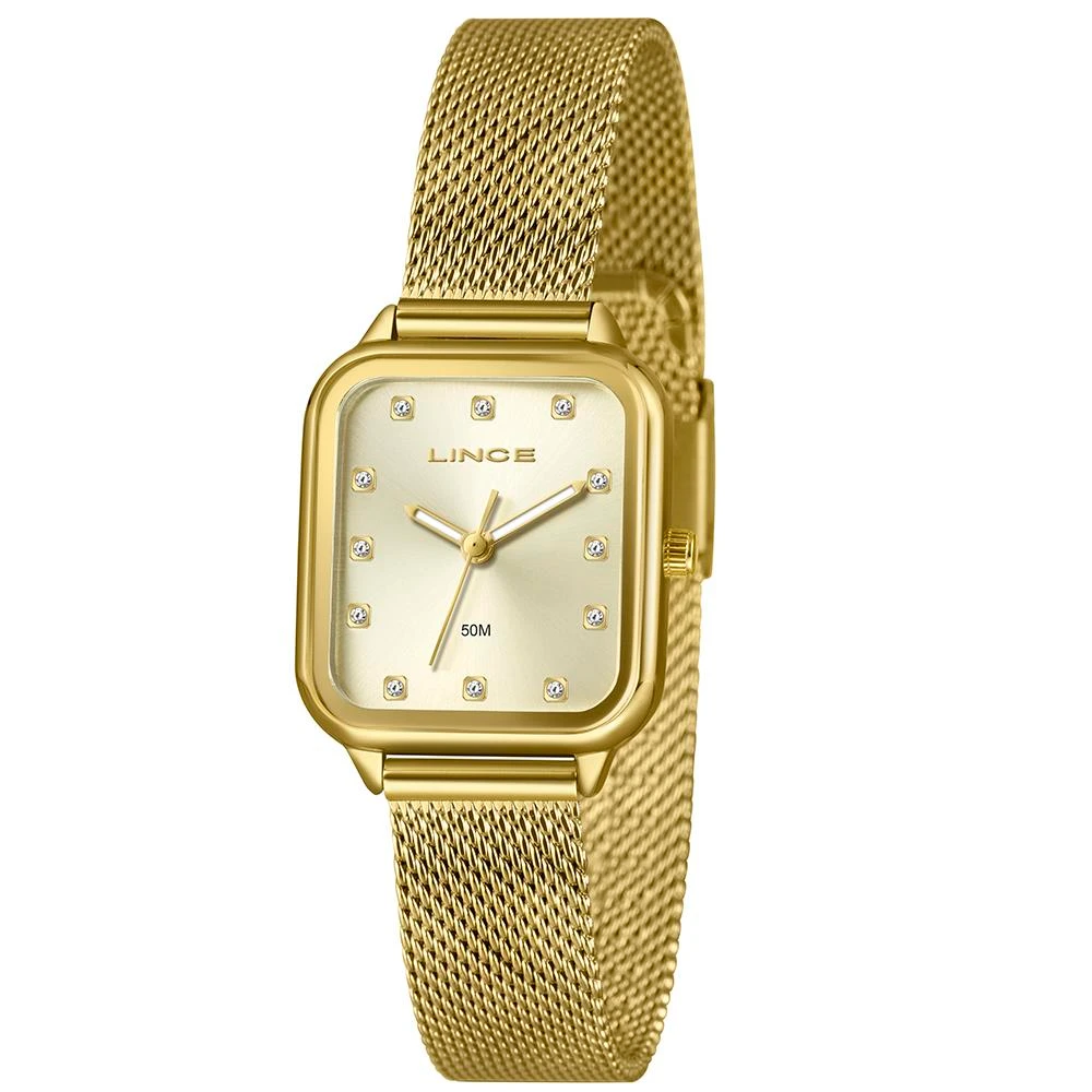 Relógio Lince Feminino Ref: Lqgh253l26 C1kx Retangular Mesh Dourado