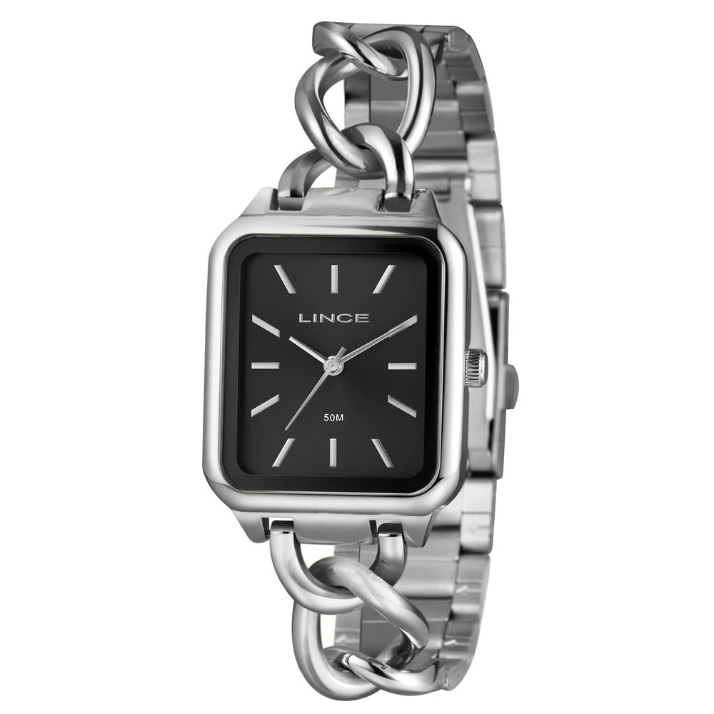 Caixa: MetalPulseira: Aço estilo braceleteMedida da caixa: 30 mm x 35 mmVidro: Cristal MineralResistência à água: 50mFunções: AnalógicoMostrador PretoFundo de PressãoAlimentação do maquinário: BateriaMaquinário JaponêsGarantia de 1 Ano
