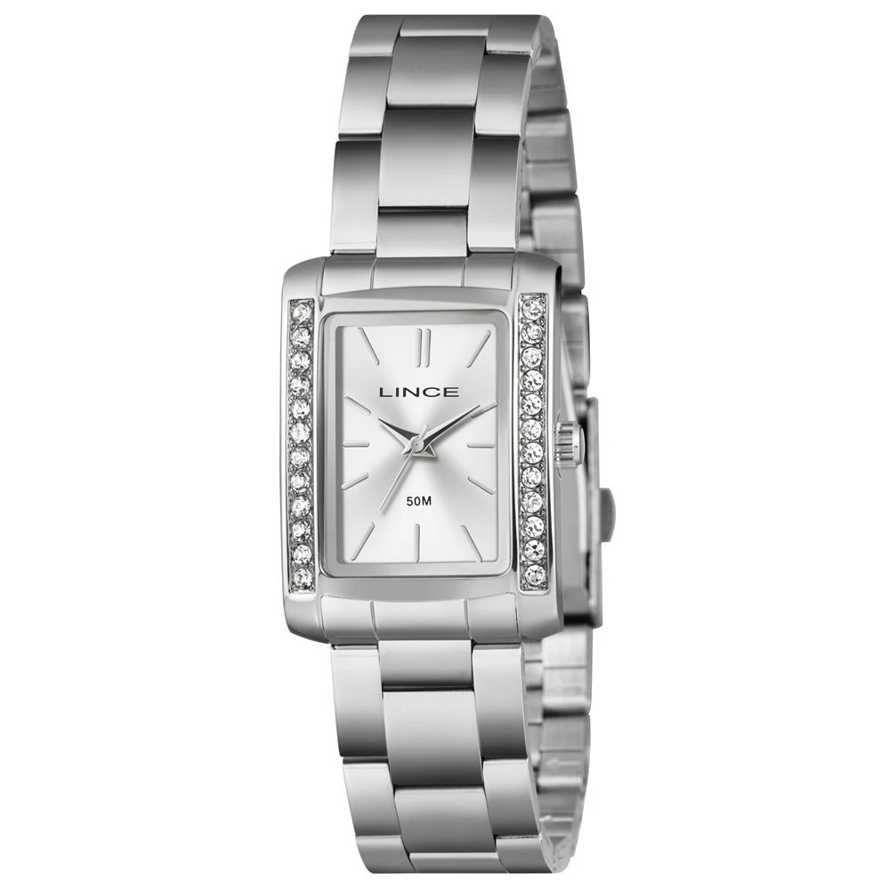 Caixa: MetalPulseira: AçoMedida da caixa: 26 mm x 30 mmVidro: Cristal MineralResistência à água: 50mFunções: AnalógicoMostrador PrateadoAro externo com pedrasFundo de PressãoAlimentação do maquinário: BateriaMaquinário JaponêsGarantia de 1 Ano
