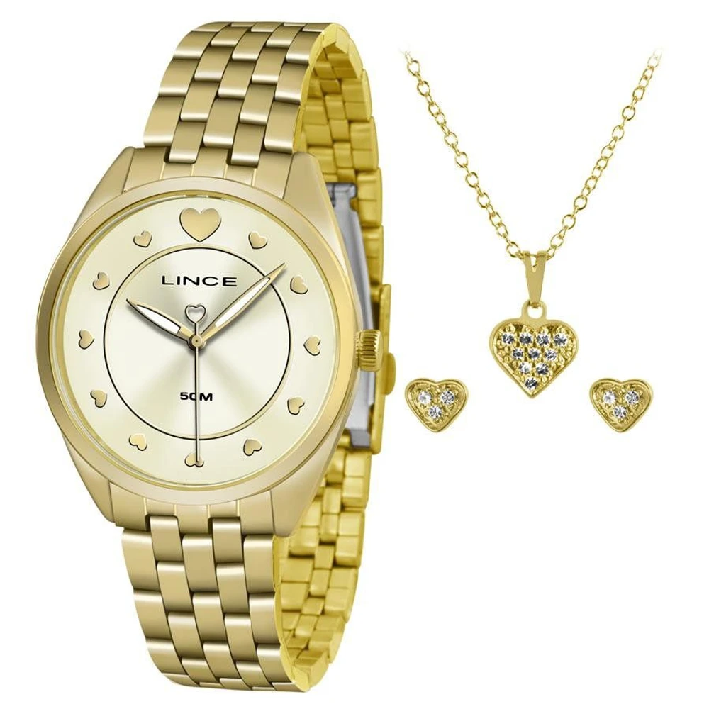 Relógio Lince Feminino Ref: Lrgh075l Kv20c1kx Dourado + Semijóia