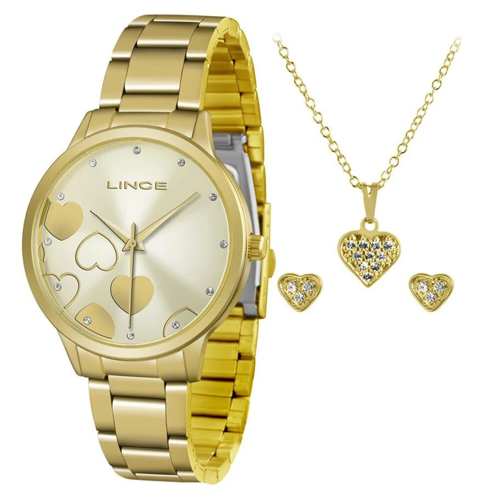 Relógio Lince Feminino Ref: Lrgh078l Kv25c1kx Dourado + Semijóia