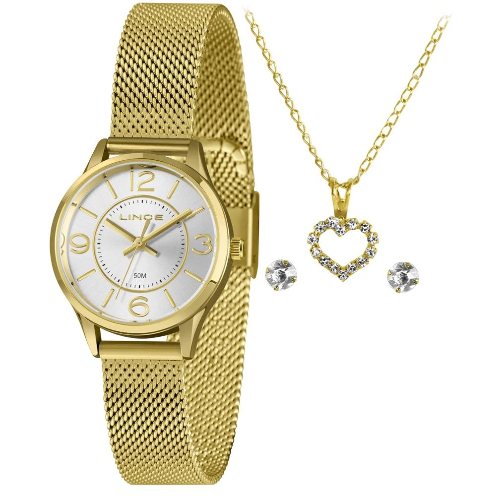 Caixa: MetalPulseira: Malha de Aço MeshMedida da caixa: 30 mmVidro: Cristal MineralResistência à água: 50mFunções: AnalógicoFundo: PressãoAlimentação do maquinário: BateriaMostrador prateado com números+ Par de brincos, corrente e pingente SemijóiaGarantia de 1 Ano