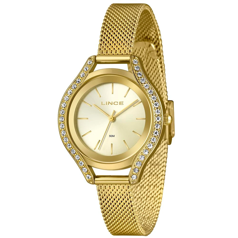 Caixa: MetalPulseira: Malha de Aço MeshMedida da caixa: 36 mmVidro: Cristal MineralResistência à água: 50mFunções: AnalógicoMostrador DouradoCom pedras externasFundo de PressãoAlimentação do Maquinário: BateriaMaquinário JaponêsGarantia de 1 Ano