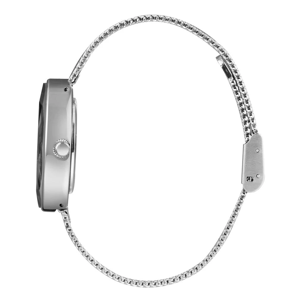 Caixa: MetalPulseira: Malha de Aço MeshMedida da caixa: 27 mm x 36 mmVidro: Cristal Mineral BisotêResistência à água: 50mFunções: AnalógicoMostrador prateadoFundo de PressãoAlimentação do Maquinário: BateriaMaquinário JaponêsGarantia de 1 Ano