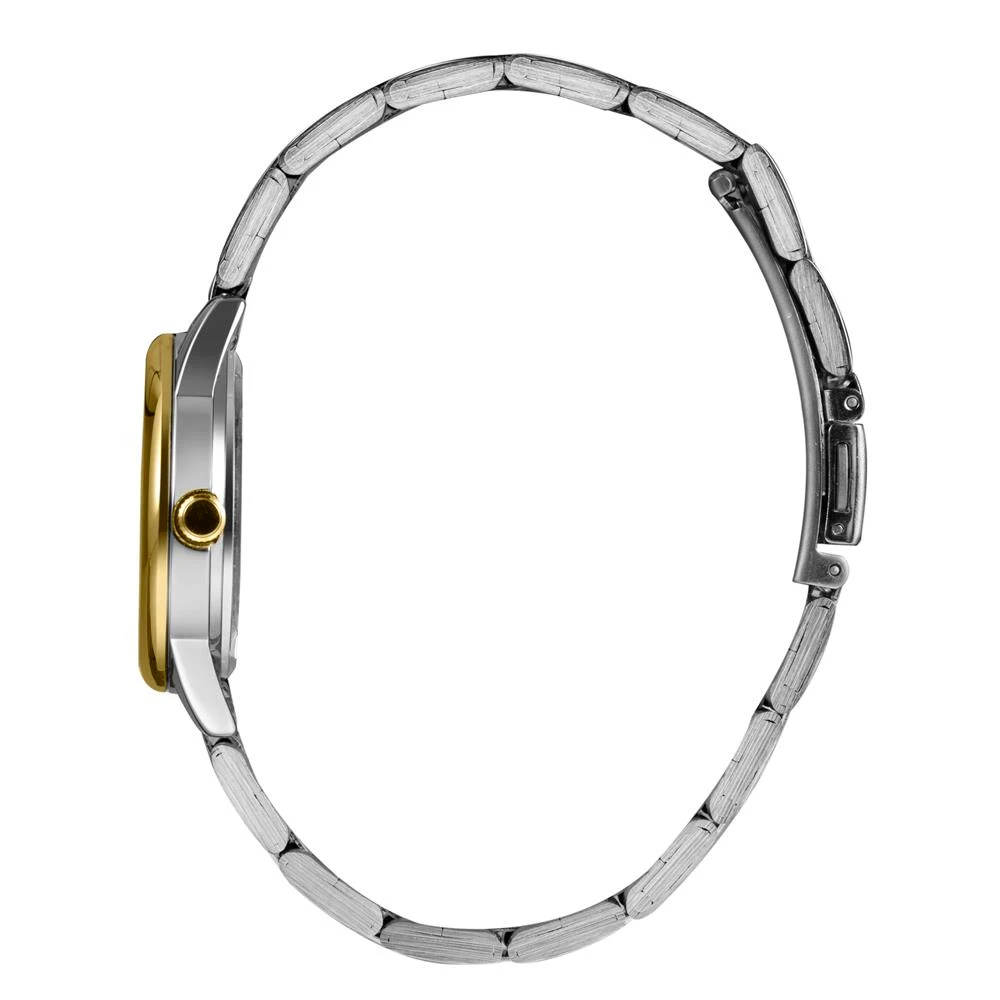 Caixa: MetalPulseira: AçoMedida da caixa: 30 mmVidro: Cristal MineralResistência à água: 50mFunções: AnalógicoMostrador Prateado com todos os númerosFundo de PressãoAlimentação do Maquinário: BateriaMaquinário JaponêsPrateado com DouradoGarantia de 1 Ano