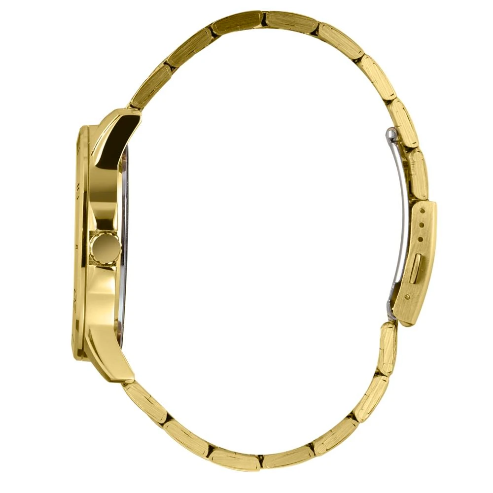 Marca: LinceGênero: MasculinoVidro: Cristal MineralFunções: AnalógicoResistência à Água: 50 mCaracterísticas: com caixa metal e pulseira de Aço InoxidávelDiâmetro da Caixa: 46 mmFundo de PressãoAlimentação do Maquinário: BateriaMostrador preto com númerosAro Fixo DouradoGarantia de 1 ano