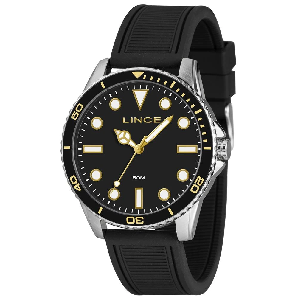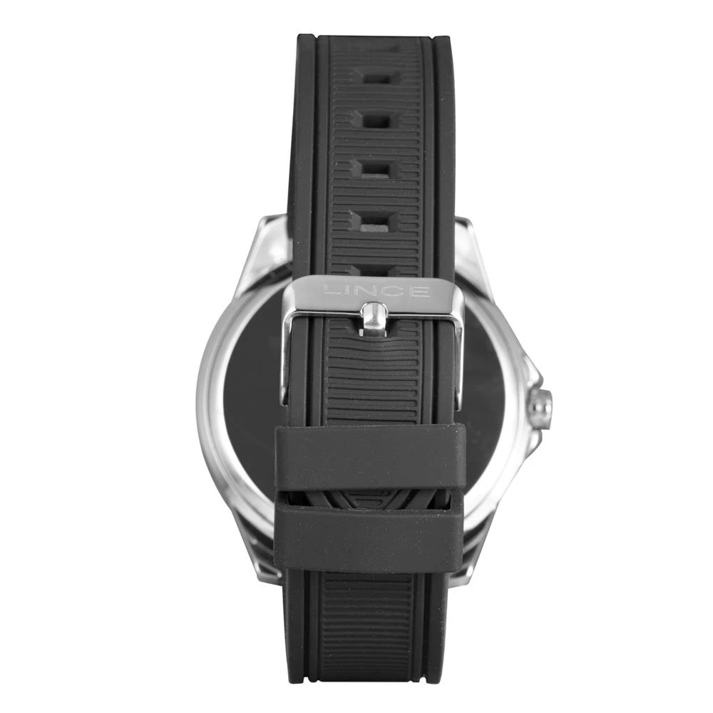 Marca: LinceGênero: MasculinoVidro: Cristal MineralFunções: AnalógicoResistência à Água: 50 mCaracterísticas: com caixa metal e pulseira de Silicone PretaDiâmetro da Caixa: 46 mmFundo de PressãoAlimentação do Maquinário: BateriaMostrador pretoAro Fixo PretoGarantia de 1 ano