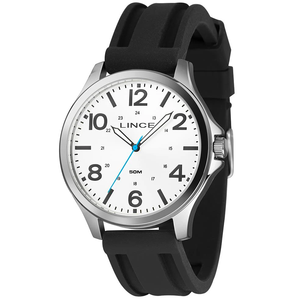 Marca: LinceGênero: MasculinoVidro: Cristal MineralFunções: AnalógicoResistência à Água: 50 mCaracterísticas: com caixa metal e pulseira de Silicone PretaDiâmetro da Caixa: 46 mmFundo de PressãoAlimentação do Maquinário: BateriaMostrador branco com númerosGarantia de 1 ano