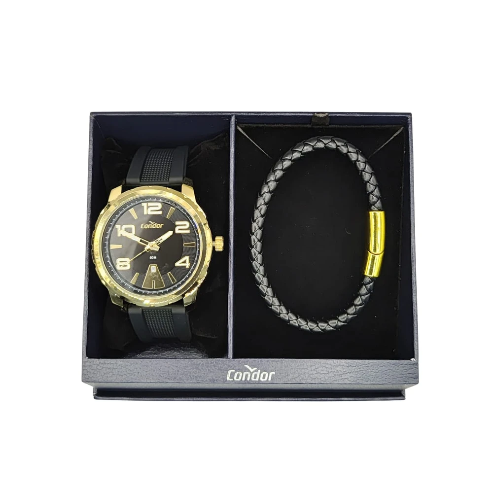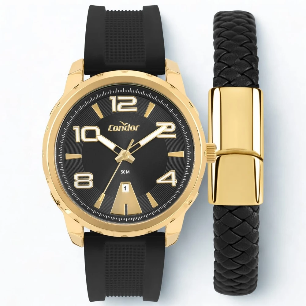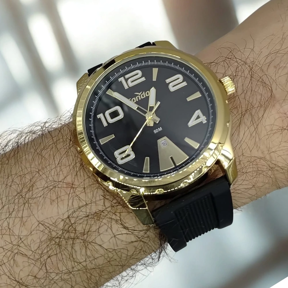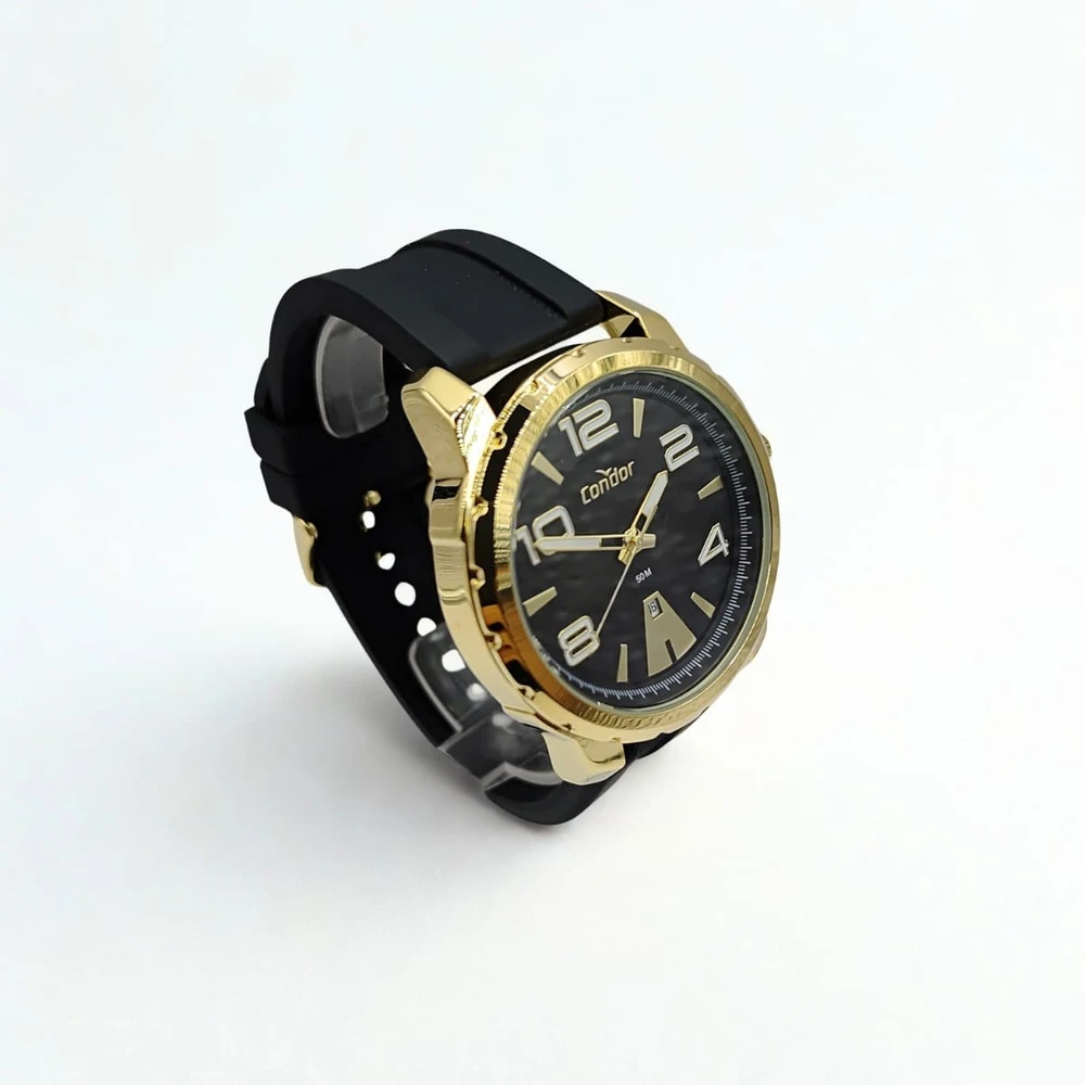A coleção Speed tem o relógio que todo homem precisa. Opção em pulseira de silicone preto em banho dourado, seu mostrador preto e o ponteiro possui detalhe de cor e calendário em 6h.