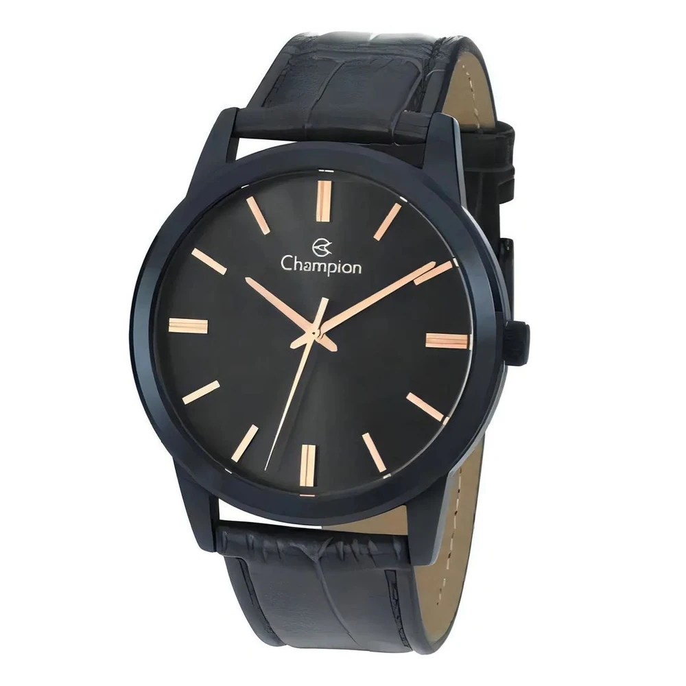 Relógio masculino preto Champion social CN20702N: sofisticação e elegância para o homem contemporâneo. Com design minimalista, sua caixa preta em metal alia resistência e estilo, enquanto a pulseira de couro legítimo garante conforto e durabilidade. Ideal para ocasiões formais e ambientes corporativos, ele destaca-se pelo acabamento refinado e mostrador preto com detalhes em dourado, que proporcionam fácil leitura e um toque de exclusividade.