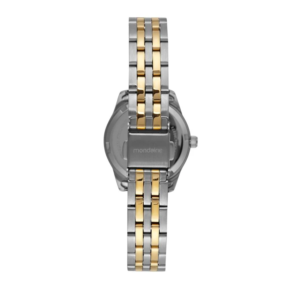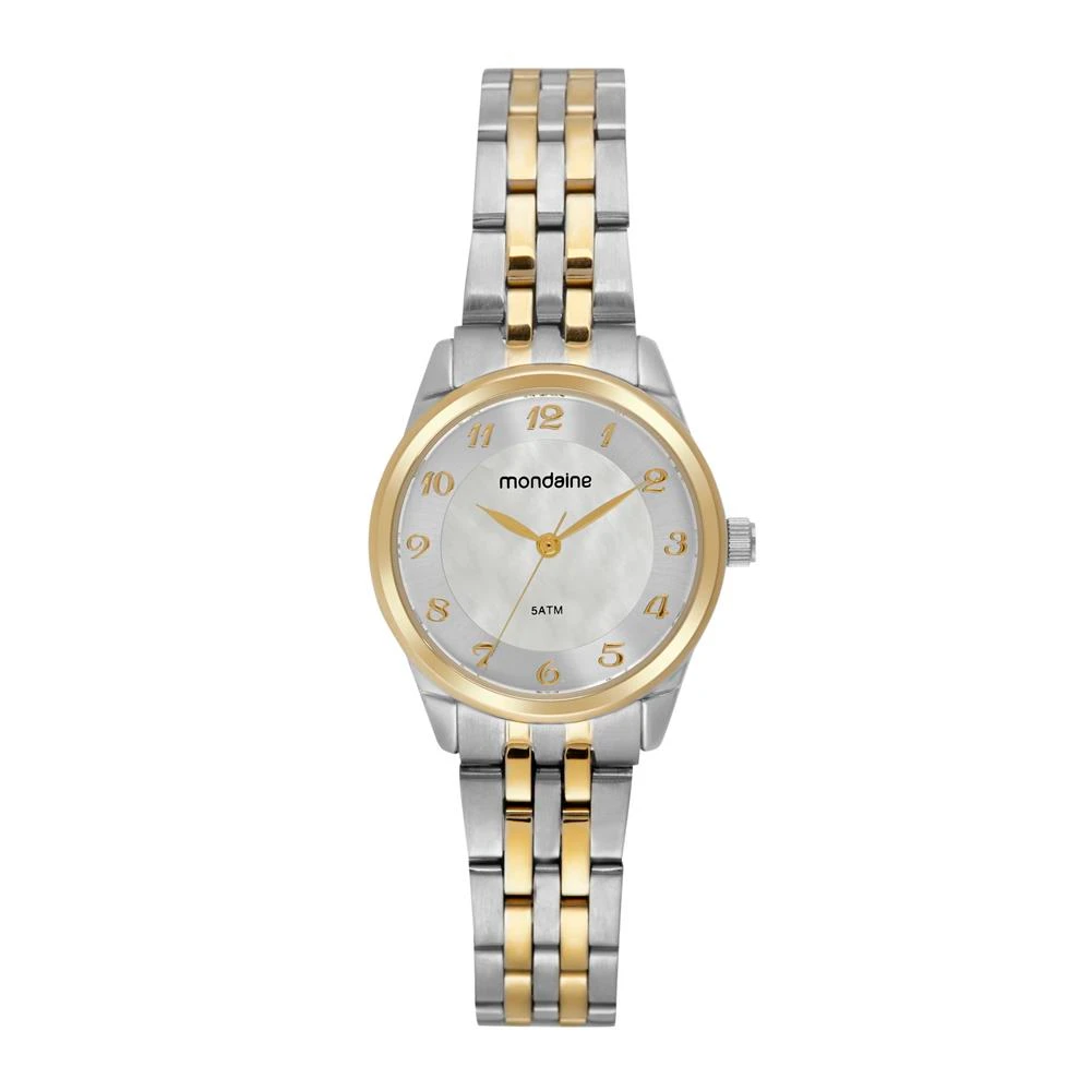 Caixa de MetalPulseira de AçoVidro de Cristal MineralFundo RosqueadoResistente à Água 5 AtmDiâmetro / Largura da Caixa: 28.00 MMFunção: AnalógicoAlimentação do Maquinário: BateriaMostrador Prateado com Todos os Números e Detalhe Estilo Madreperola Branca+ Porta JoiasGarantia de 1 Ano