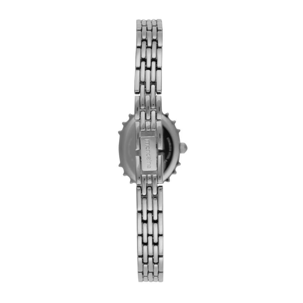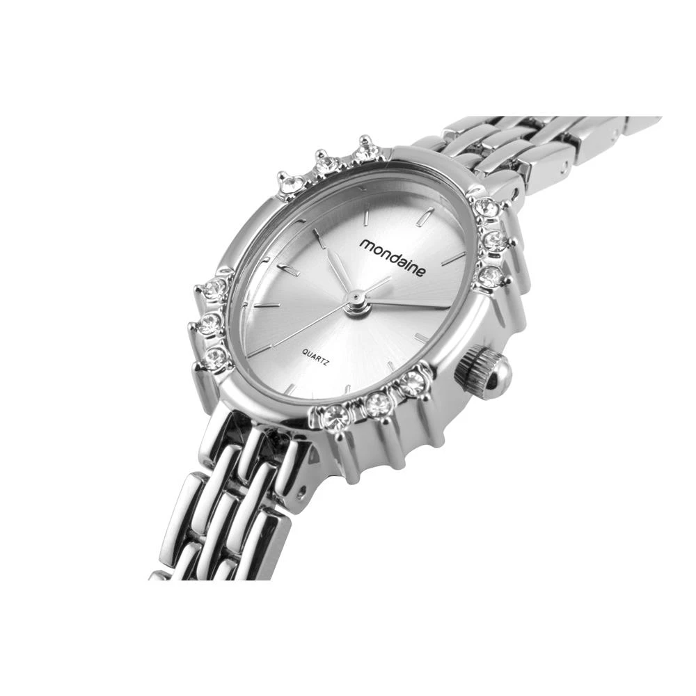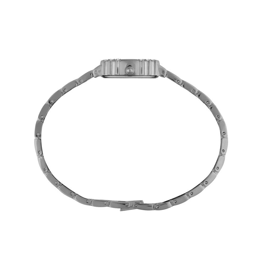 Caixa de MetalPulseira de Metal BraceleteVidro de Cristal MineralFundo de PressãoResistente à Água 5 AtmDiâmetro / Largura da Caixa: 20.00 MM x 25.00 MMFunção: AnalógicoAlimentação do Maquinário: BateriaMostrador PrateadoPedras ExternasGarantia de 1 Ano