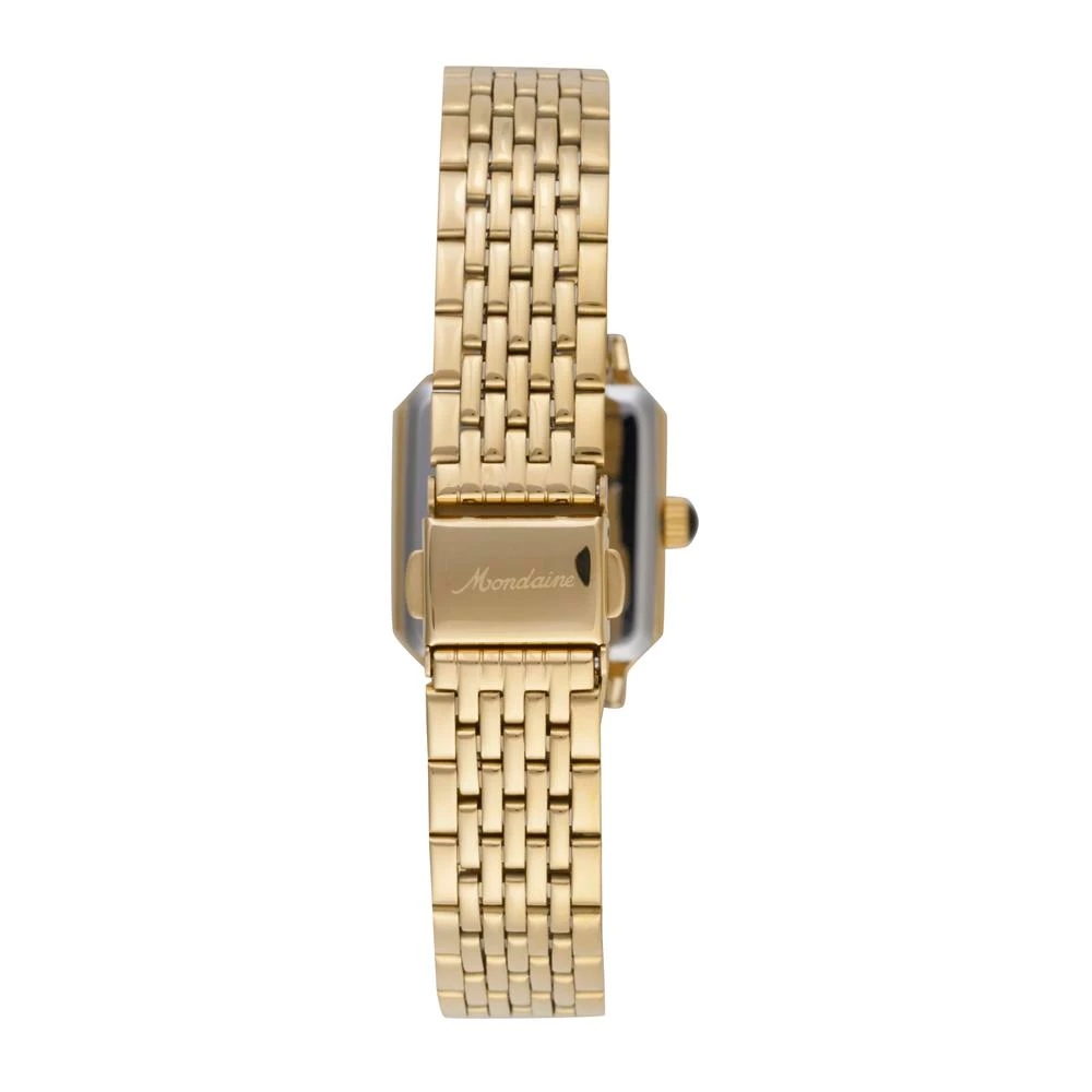Caixa de MetalPulseira de AçoVidro de Cristal MineralFundo de PressãoResistente à Água 3 AtmDiâmetro / Largura da Caixa: 25.00 MM x 26.00 MMFunção: AnalógicoAlimentação do Maquinário: BateriaMostrador Dourado Com inscrição Mondaine 1954Coleção Especial Mondaine 1954+ 2 Pulseiras de Couro Legítimo (Preto e Vermelho)