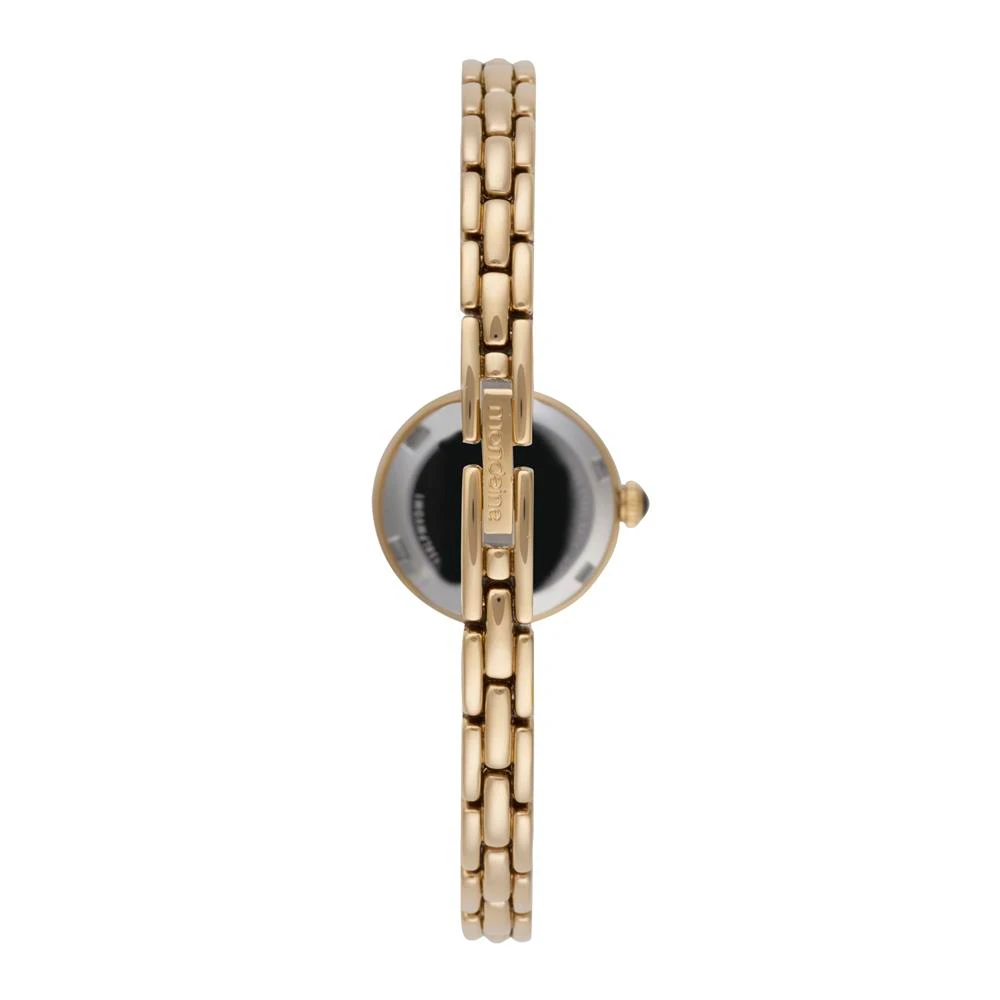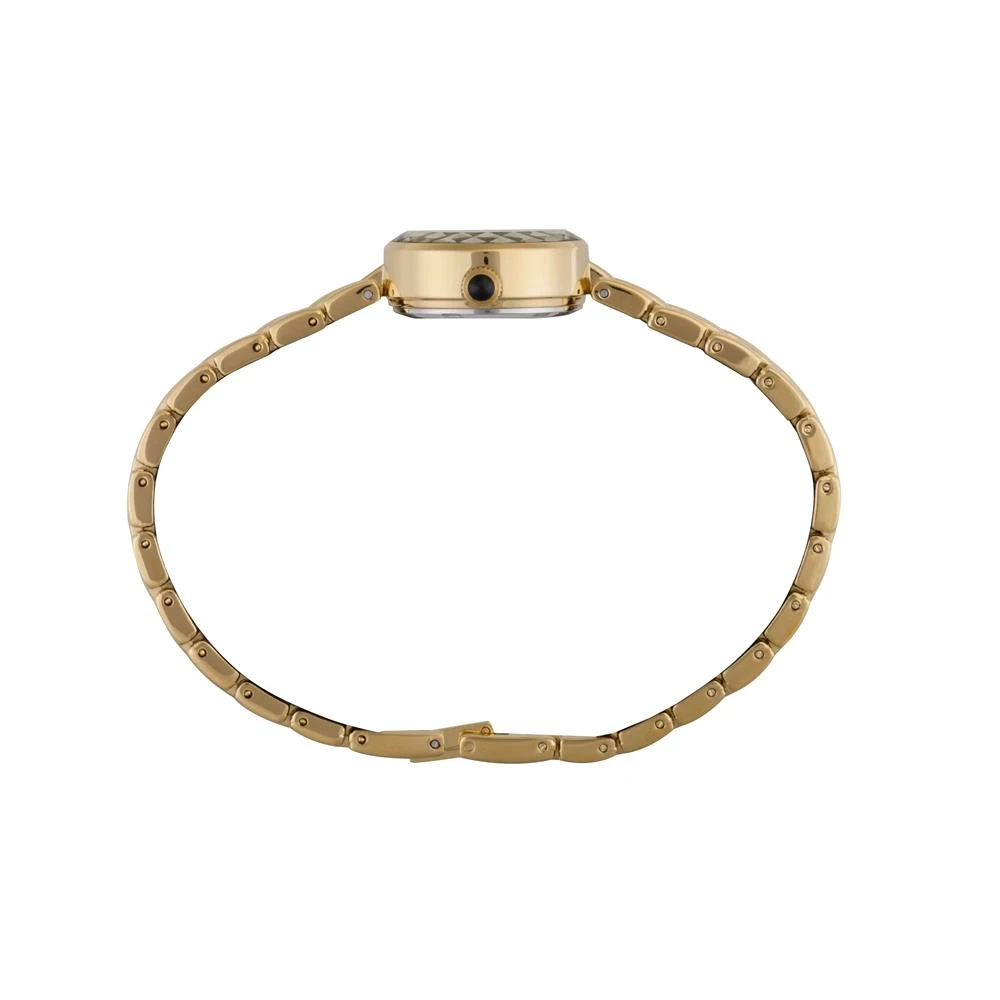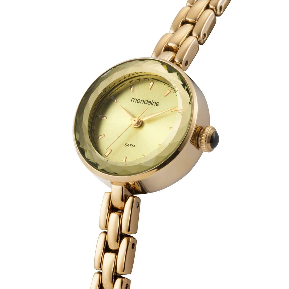 Caixa de MetalPulseira de Metal BraceleteVidro de Cristal Mineral facetadoFundo RosqueadoResistente à Água 5 AtmDiâmetro / Largura da Caixa: 23.00 MMFunção: AnalógicoAlimentação do Maquinário: BateriaMostrador DouradoGarantia de 1 Ano