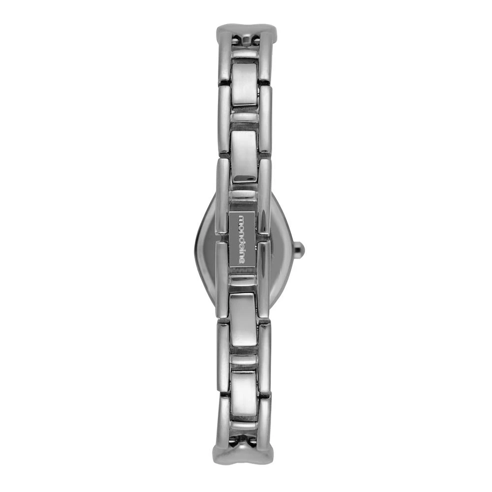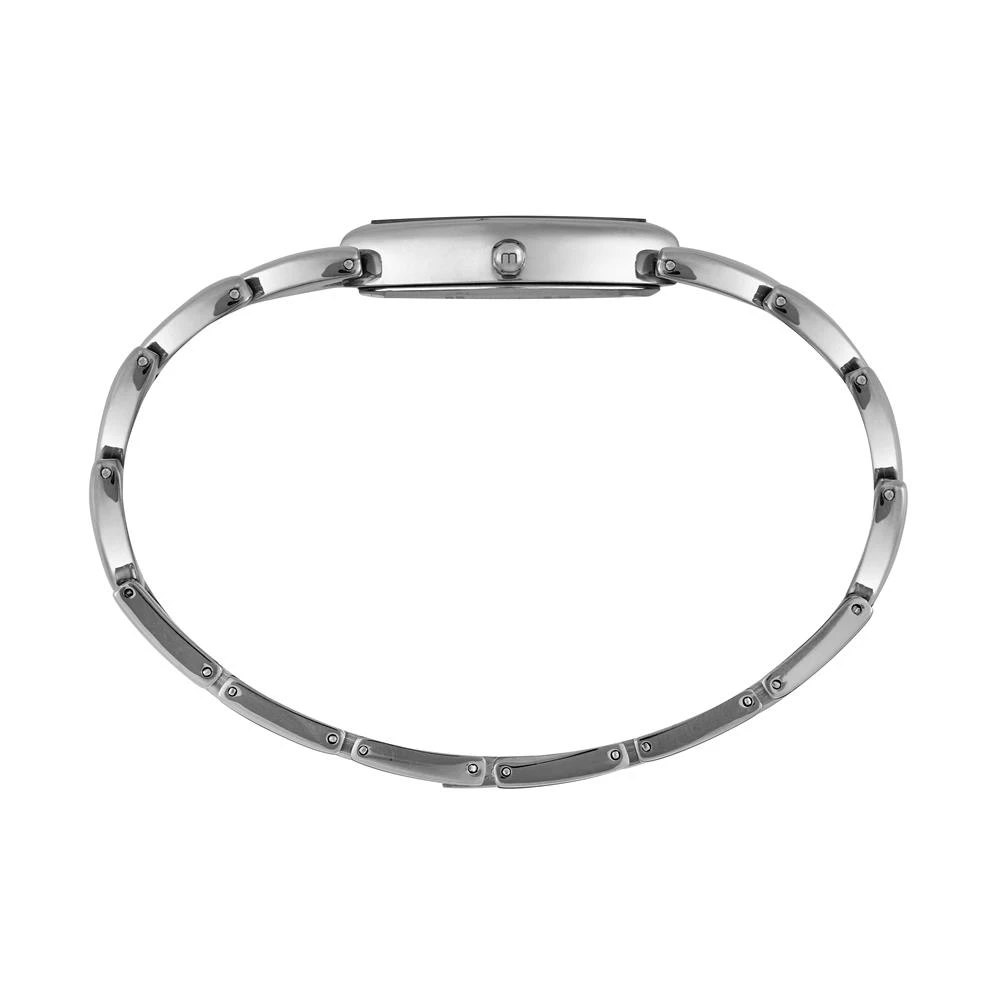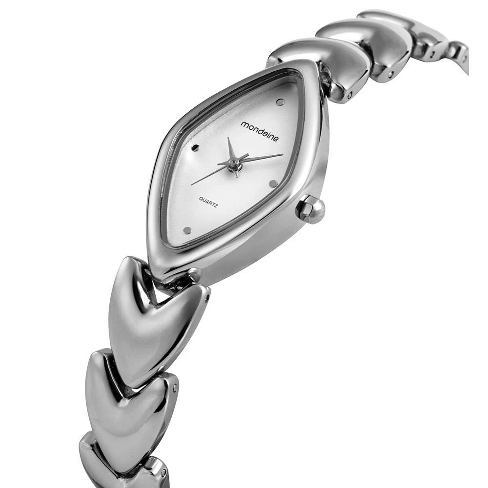 Caixa de MetalPulseira de Metal Estilo BraceleteVidro de Cristal MineralFundo de PressãoResistente à Água 3 AtmDiâmetro / Largura da Caixa: 20.00 MM x 36.00 MMFunção: Analógico, BraceleteAlimentação do Maquinário: BateriaMostrador PrateadoGarantia de 1 Ano