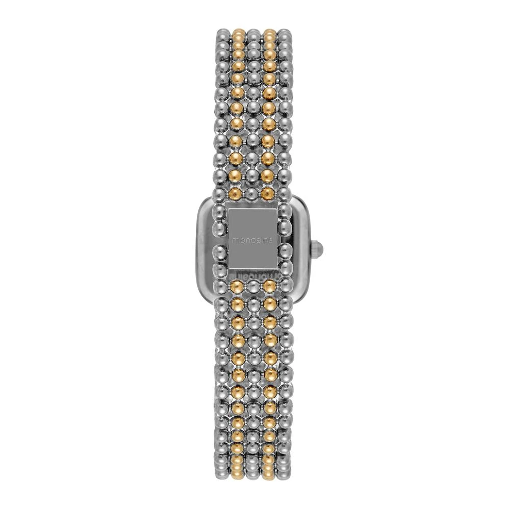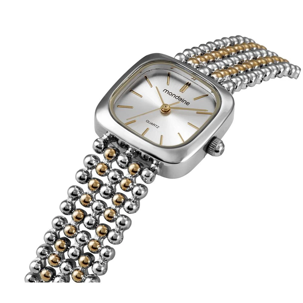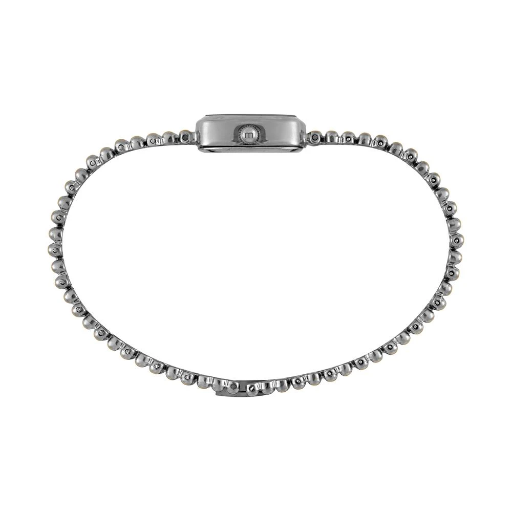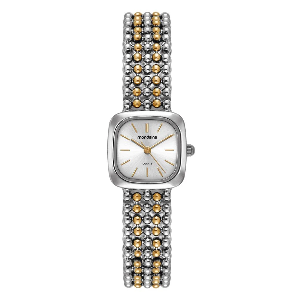 Caixa de MetalPulseira de Metal Estilo BraceleteVidro de Cristal MineralFundo de PressãoResistente à Água 3 AtmDiâmetro / Largura da Caixa: 22.00 MM x 22.00 MMFunção: Analógico, BraceleteAlimentação do Maquinário: BateriaMostrador PrateadoPrateado com DouradoGarantia de 1 Ano