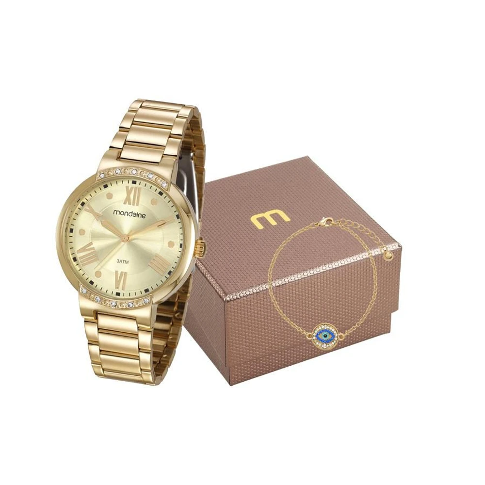 Relogio Mondaine Feminino Ref: 99298lpmgde2 Dourado + Semijóia