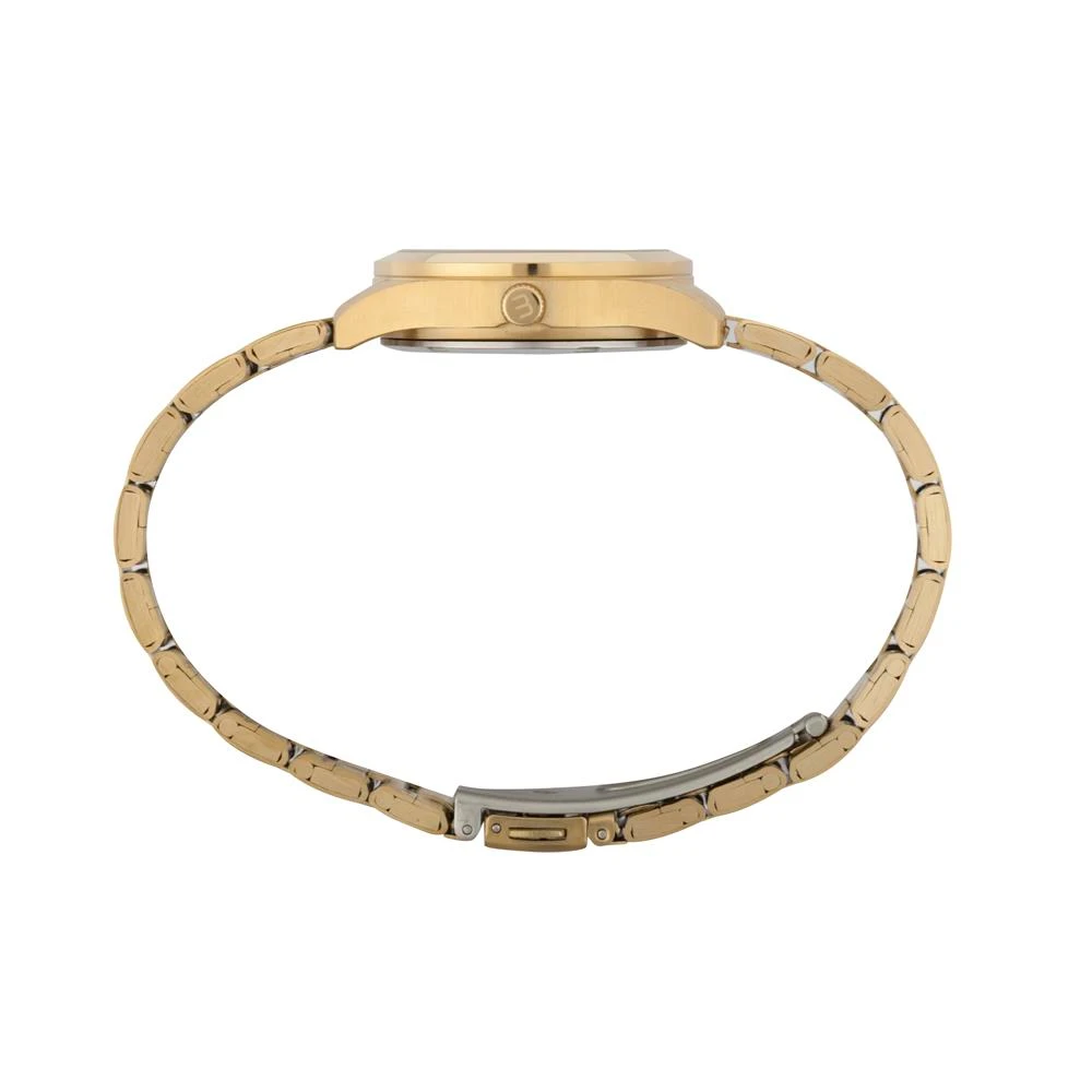 Caixa de AçoPulseira de AçoVidro de Cristal MineralFundo RosqueadoResistente à Água 5 AtmDiâmetro / Largura da Caixa: 32.00 MMFunção: AnalógicoAlimentação do Maquinário: BateriaMostrador Dourado com Números e pedrasGarantia de 1 Ano