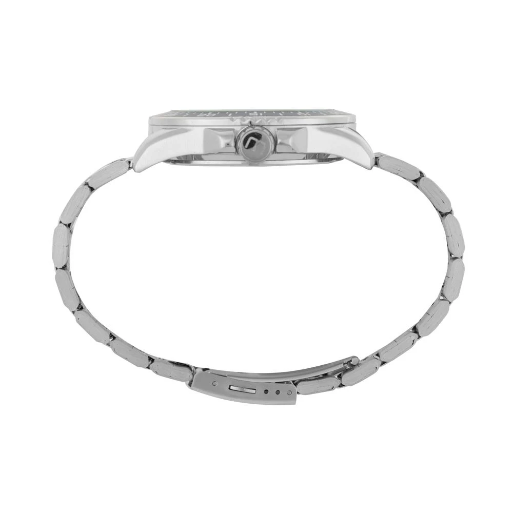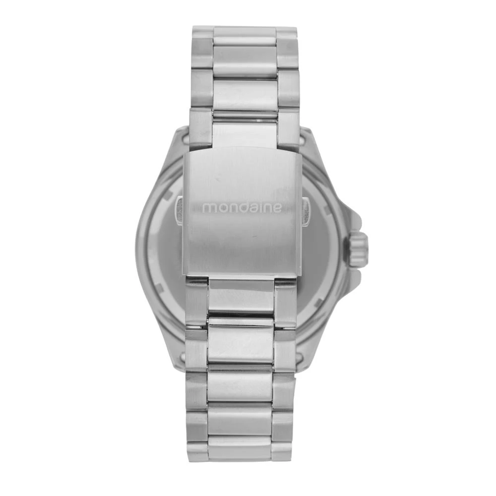Caixa de MetalPulseira de AçoVidro de Cristal MineralFundo RosqueadoResistente à Água 5 AtmDiâmetro / Largura da Caixa: 48.00 MMFunção: Analógico, CalendárioMostrador Azul com númeroAro fixo azulAlimentação do Maquinário: BateriaGarantia de 1 Ano