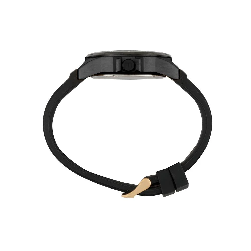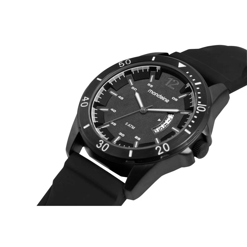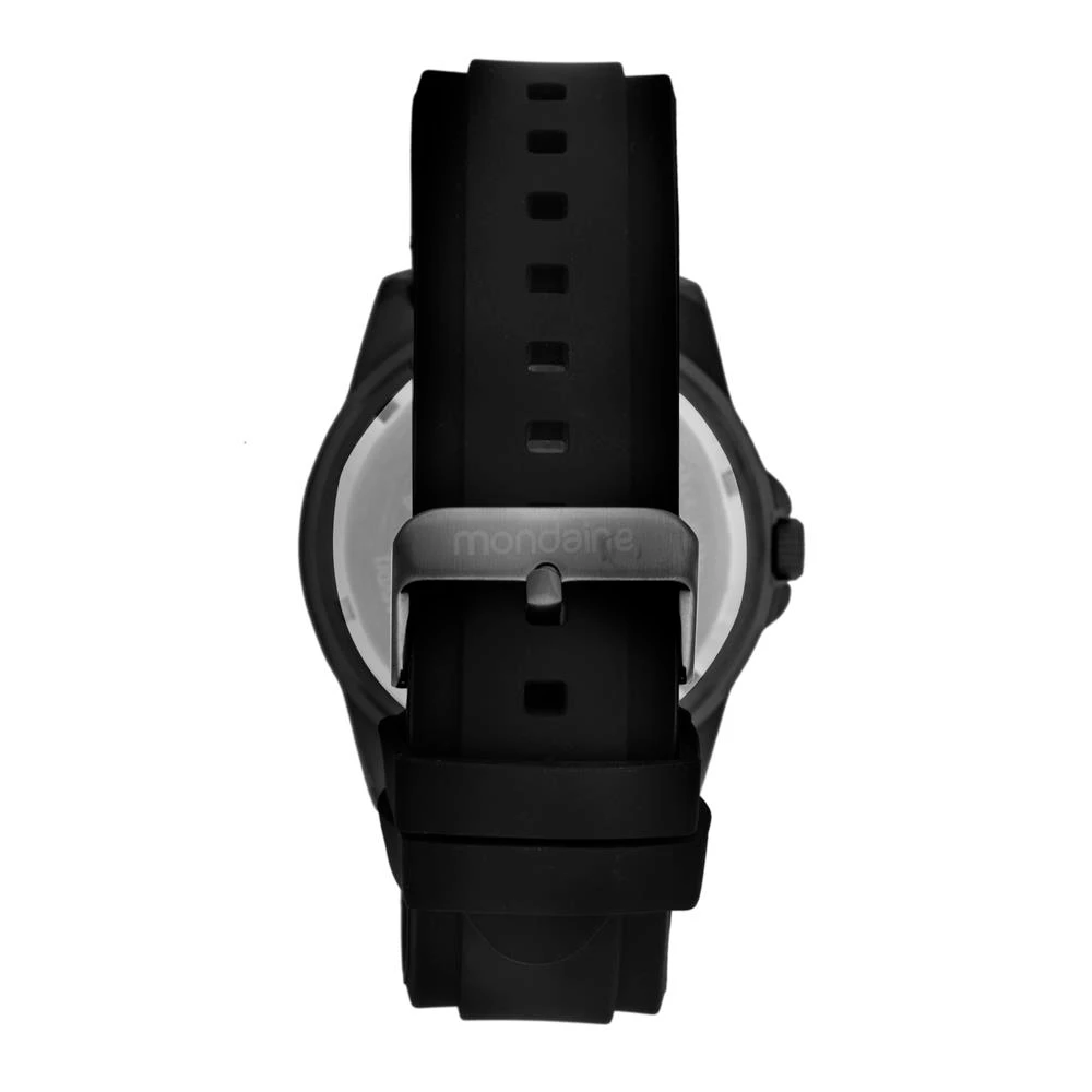 Caixa de MetalPulseira de Silicone PretaVidro de Cristal MineralFundo RosqueadoResistente à Água 5 AtmDiâmetro / Largura da Caixa: 46.00 MMFunção: Analógico, CalendárioMostrador Preto com númeroAro Fixo PretoAlimentação do Maquinário: BateriaGarantia de 1 Ano