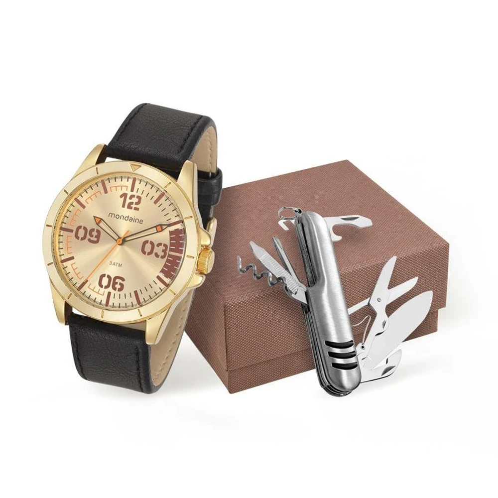 Relogio Mondaine Masculino Ref: 76702gpmvdh2 Dourado + Canivete Suíço