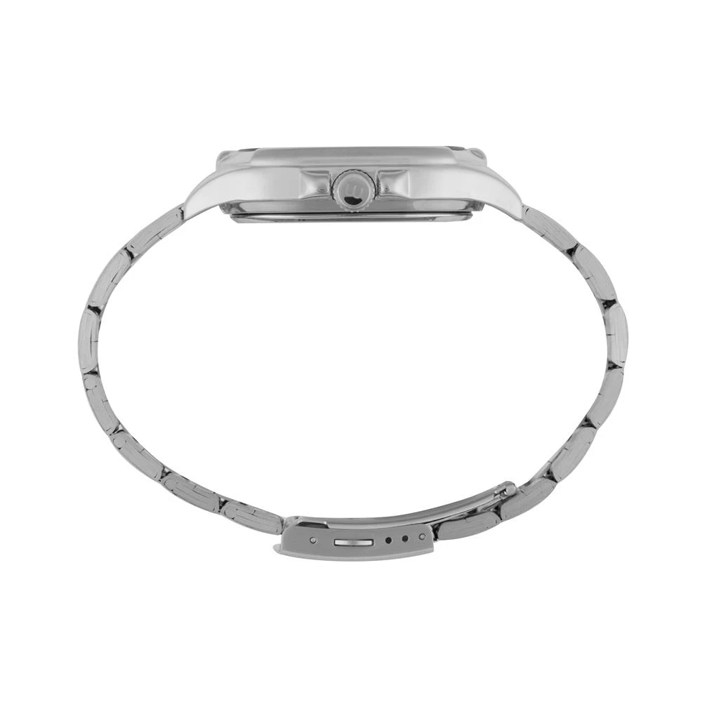 Caixa de MetalPulseira de AçoVidro de Cristal MineralFundo de PressãoResistente à Água 3 AtmDiâmetro / Largura da Caixa: 44.00 MM x 43.00 MMFunção: Analógico, CalendárioMostrador Preto com númerosAlimentação do Maquinário: BateriaGarantia de 1 Ano