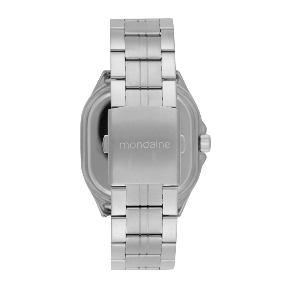 Caixa de MetalPulseira de AçoVidro de Cristal MineralFundo de PressãoResistente à Água 3 AtmDiâmetro / Largura da Caixa: 44.00 MM x 43.00 MMFunção: Analógico, CalendárioMostrador Prateado com númerosAlimentação do Maquinário: BateriaGarantia de 1 Ano