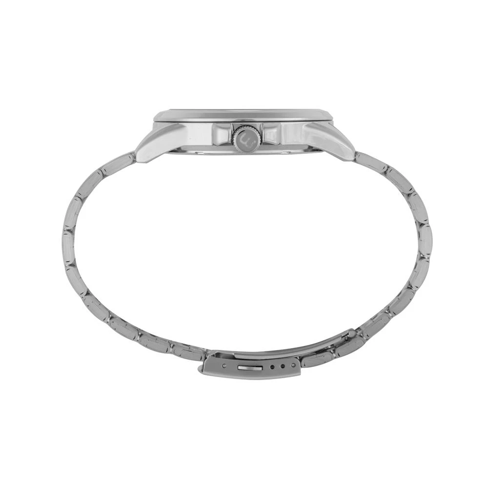 Caixa de MetalPulseira de AçoVidro de Cristal MineralFundo RosqueadoResistente à Água 5 AtmDiâmetro / Largura da Caixa: 45.00 MMFunção: AnalógicoMostrador Preto com númerosAlimentação do Maquinário: BateriaGarantia de 1 Ano