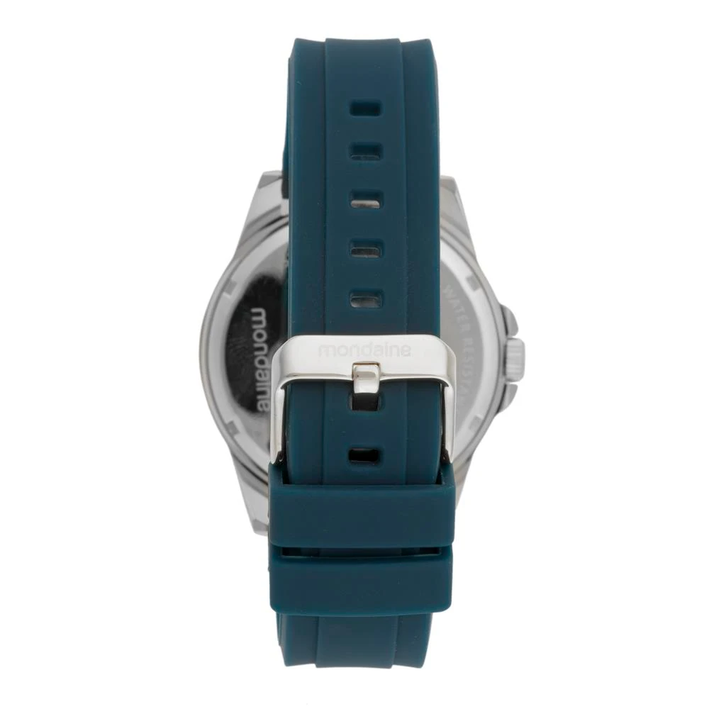 Caixa de MetalPulseira de Silicone AzulVidro de Cristal MineralFundo RosqueadoResistente à Água 5 AtmDiâmetro / Largura da Caixa: 42.00 MMFunção: AnalógicoMostrador Azul com númerosAlimentação do Maquinário: BateriaGarantia de 1 Ano