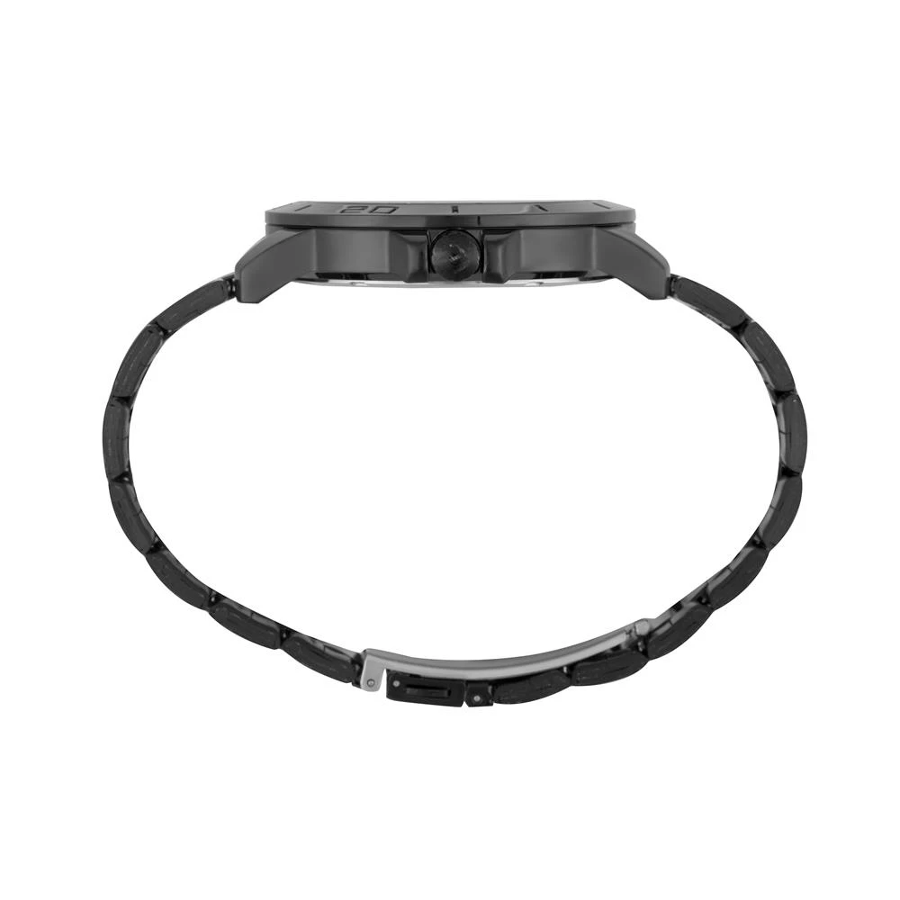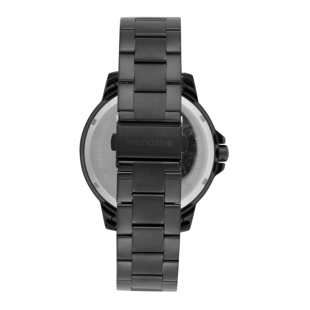 Caixa de MetalPulseira de AçoVidro de Cristal MineralFundo RosqueadoResistente à Água 5 AtmDiâmetro / Largura da Caixa: 48.00 MMFunção: AnalógicoMostrador Preto com númerosAro Fixo PretoAlimentação do Maquinário: BateriaGarantia de 1 Ano