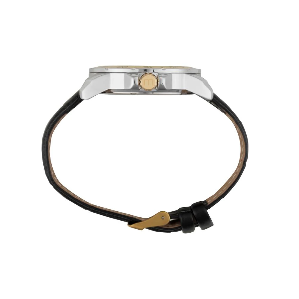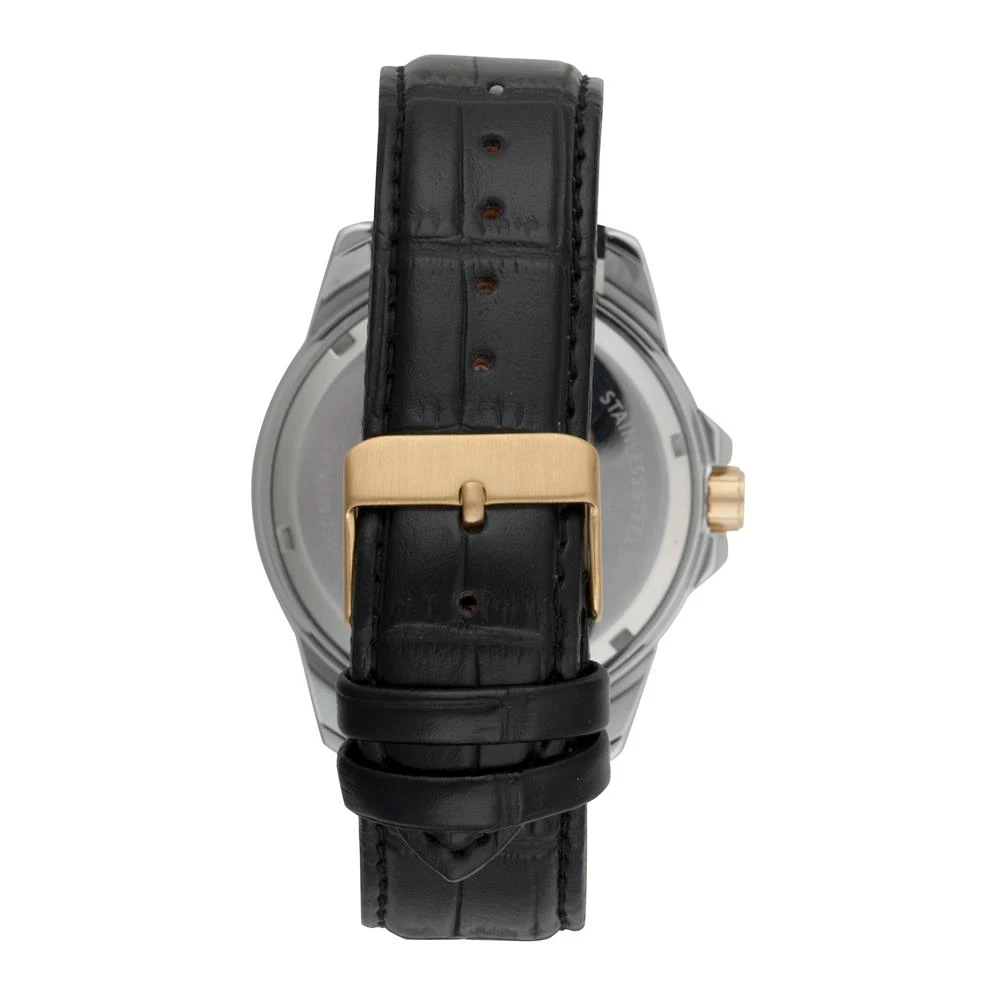 Caixa de MetalPulseira de Couro Ecológico PretoVidro de Cristal MineralFundo RosqueadoResistente à Água 5 AtmDiâmetro / Largura da Caixa: 44.00 MMFunção: Analógico, CalendárioMostrador Azul com númerosAro Fixo DouradoPrateado com DouradoAlimentação do Maquinário: BateriaGarantia de 1 Ano
