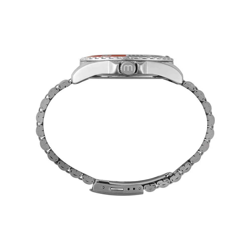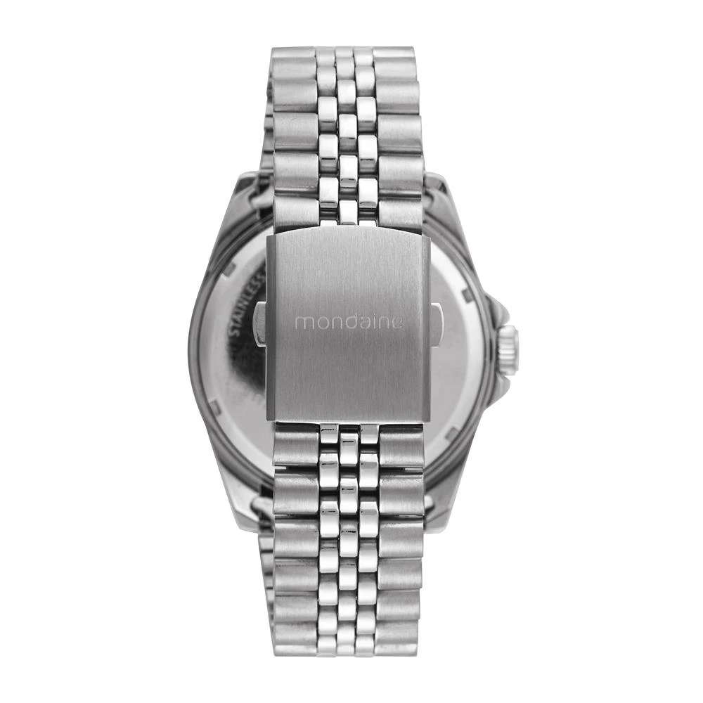 Caixa de MetalPulseira de AçoVidro de Cristal MineralFundo RosqueadoResistente à Água 5 AtmDiâmetro / Largura da Caixa: 45.00 MMFunção: AnalógicoMostrador Preto com todos os númerosAro Fixo Preto e VermelhoAlimentação do Maquinário: BateriaGarantia de 1 Ano