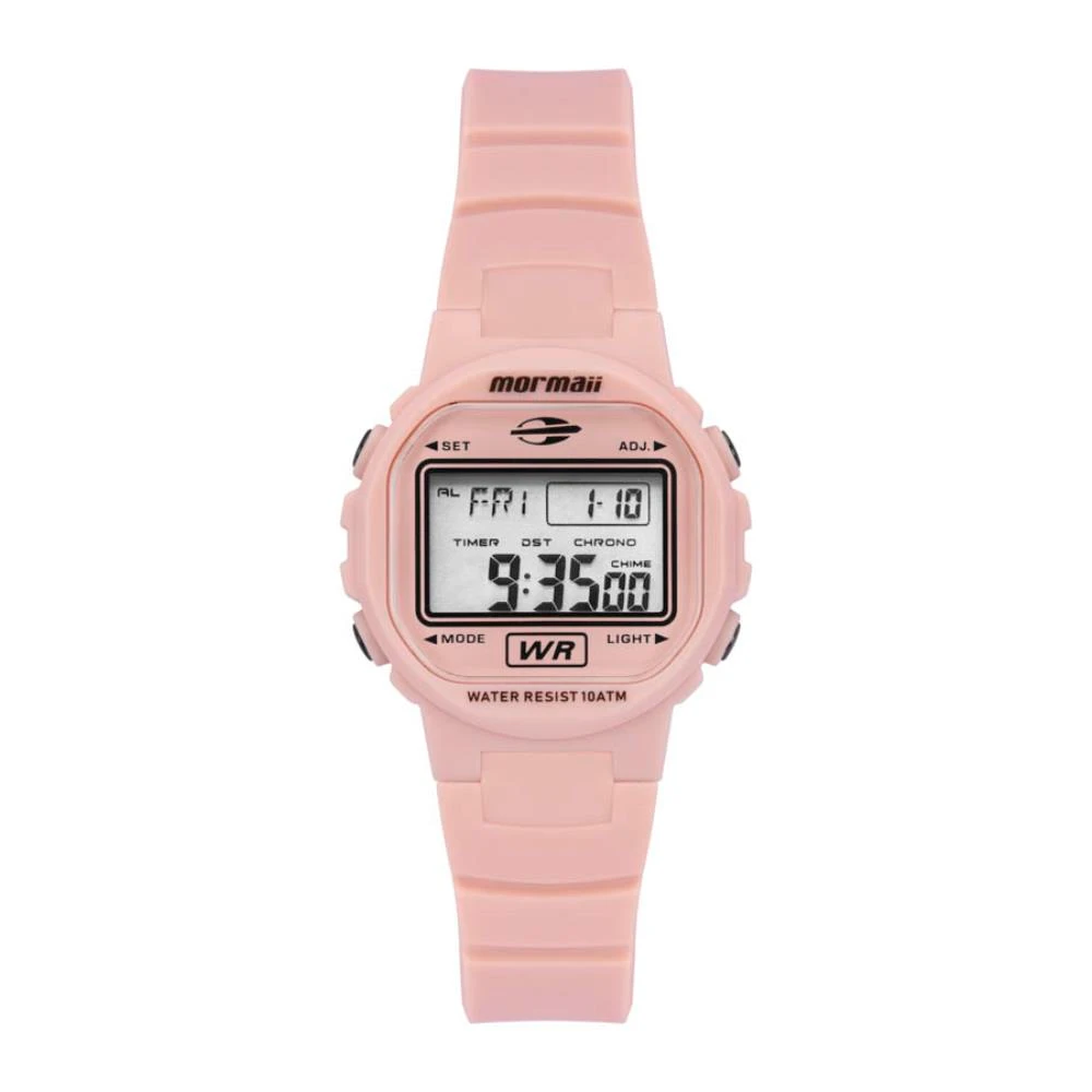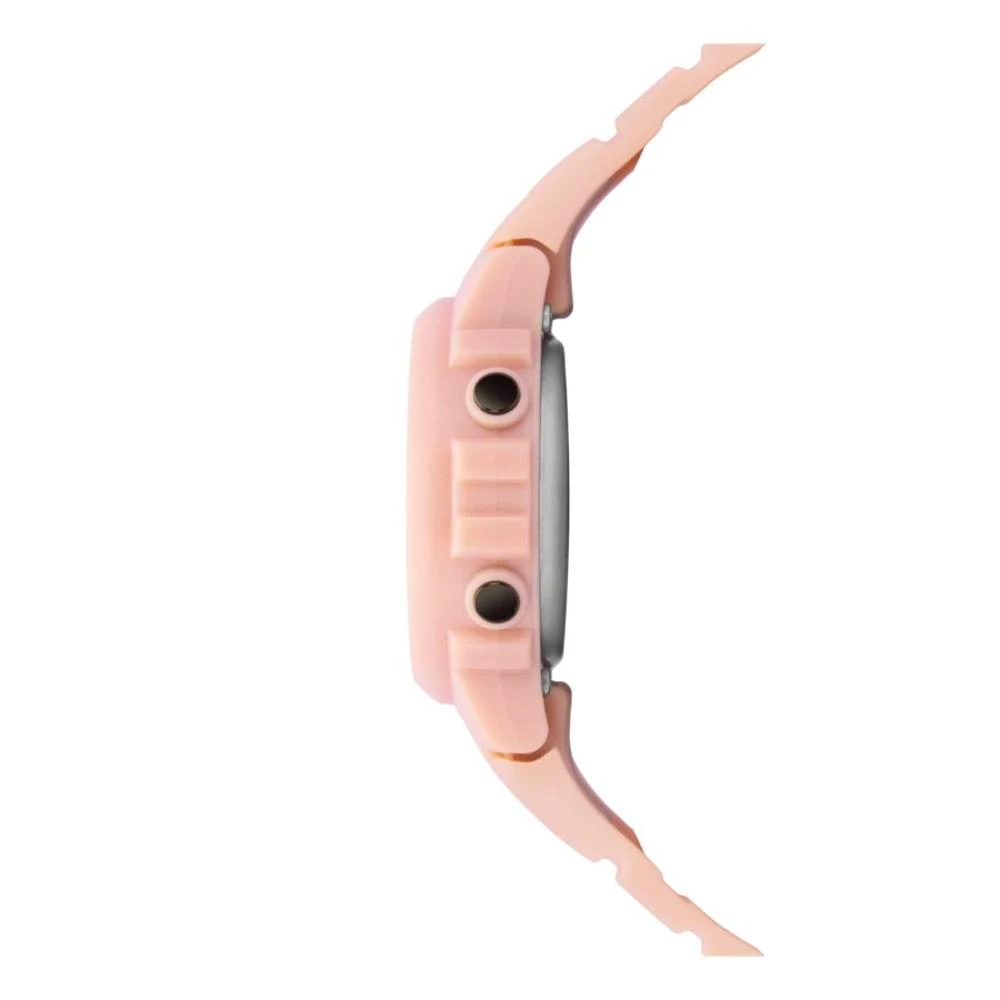 Caixa de Polímero Rosa ClaroPulseira de Poliuretano Rosa ClaroFundo ParafusadoResistente à Água 5 ATMDiâmetro / Largura da Caixa: 35.00 MMFunções: Digital, Cronógrafo, Iluminação, 2 Alarmes, Timer, GMT (horário mundial)Vidro: AcrílicoAlimentação do Maquinário: BateriaMostrador Rosa ClaroGarantia de 1 Ano